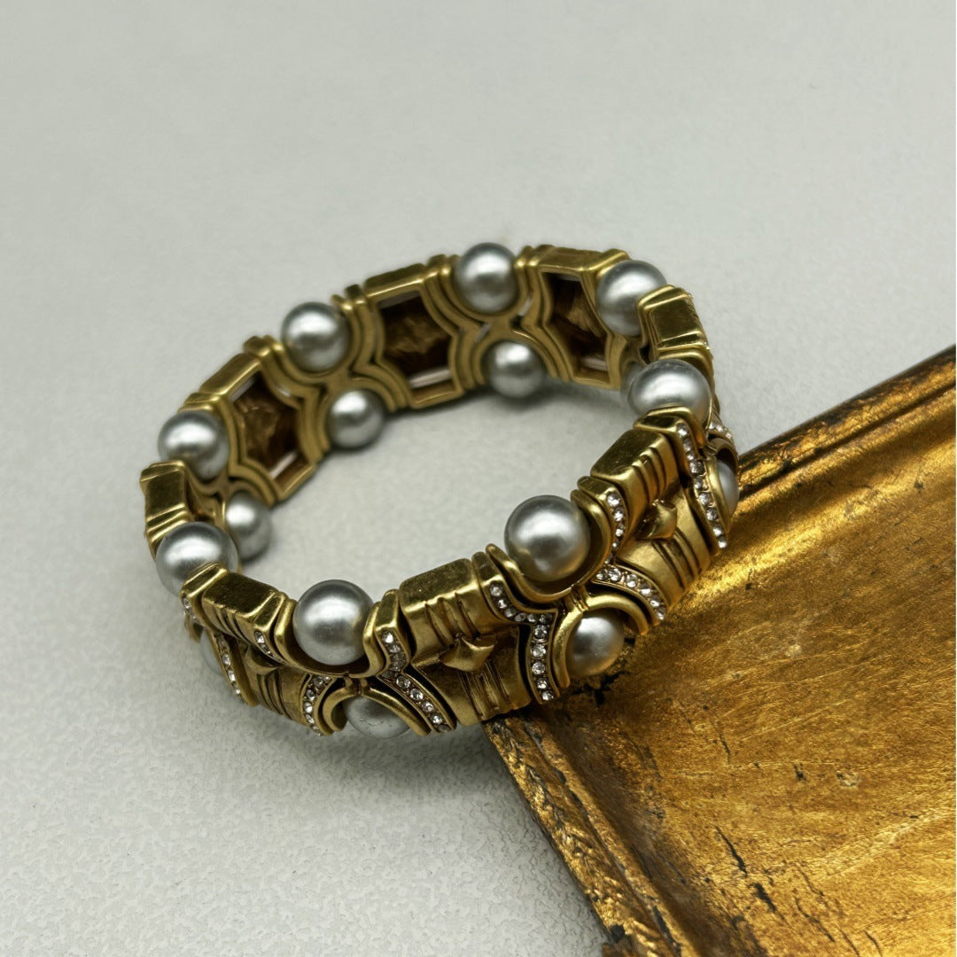 Western Vintage Pearl Agate Stone Bracelet Simple Fashion All-match Old Jewelry