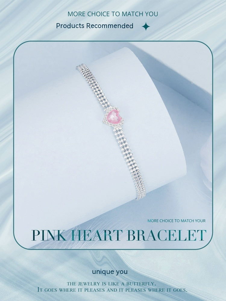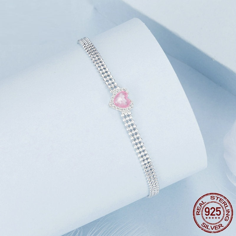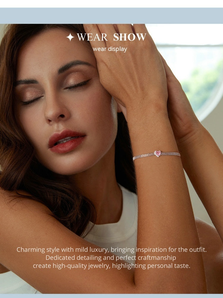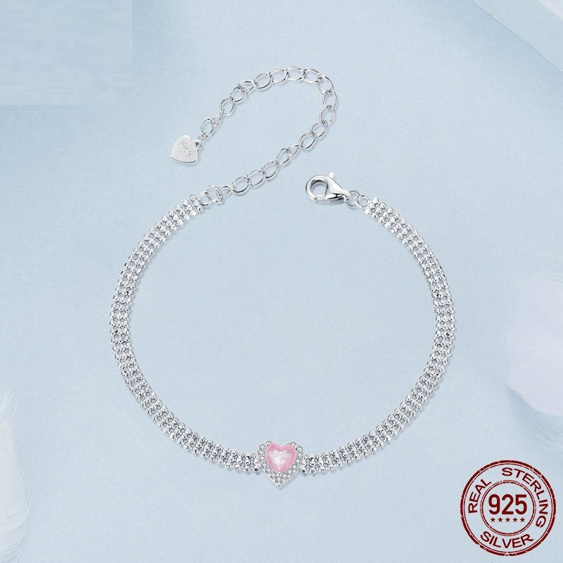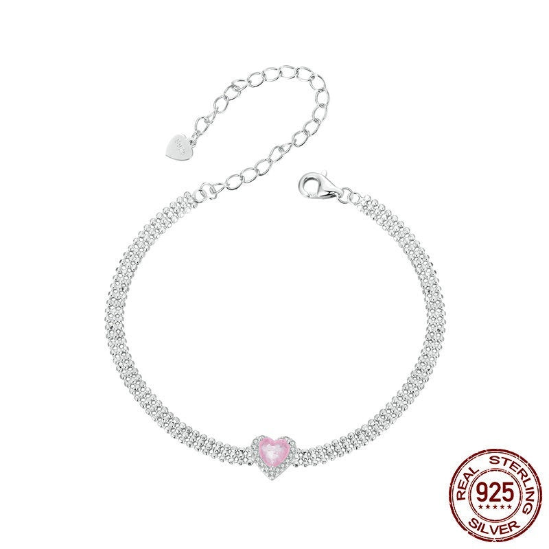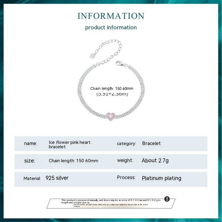 White Gold Plated Zircon Ice Flower Love Heart Wide Bracelet S925 Sterling Silver Ornament