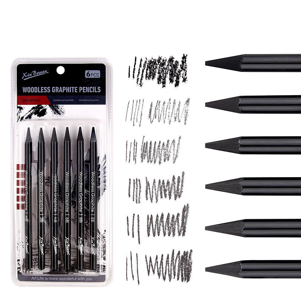 Wood-free Graphite Full Lead Sketching Pencil 6 PCs Suit For Art