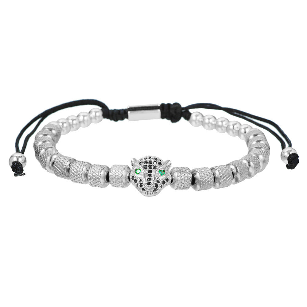 Zircon Leopard Head Stainless Steel Pineapple Bead Bracelet