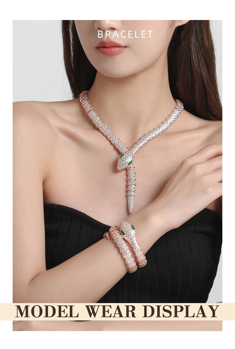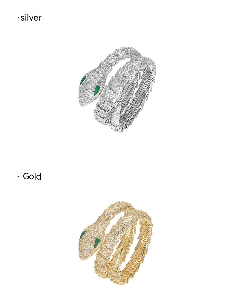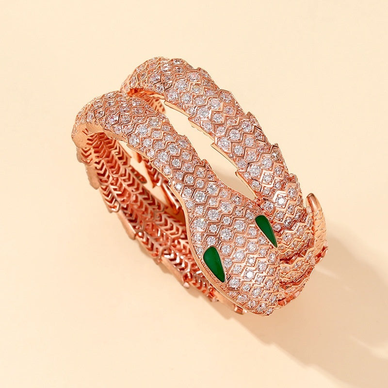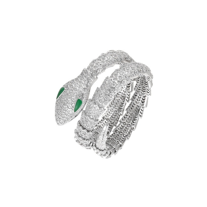 Zircon Plated Platinum Full Diamond Vintage Green Eyed Snake Bracelet