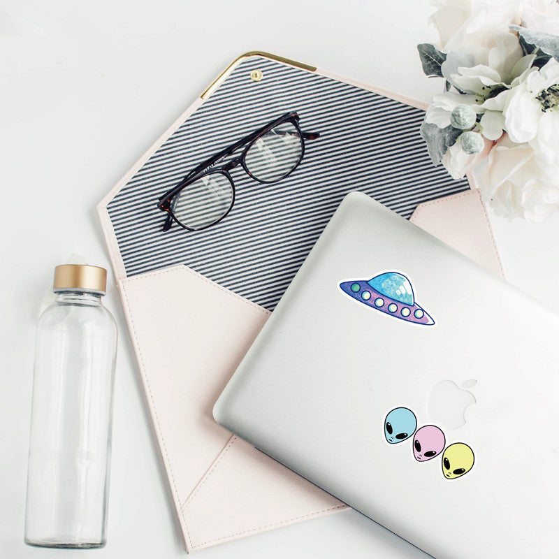 50 pegatinas de alienígenas instaladas, pegatinas para ordenador portátil, monopatín, carrito, OVNI, pegatinas para cuentas de mano