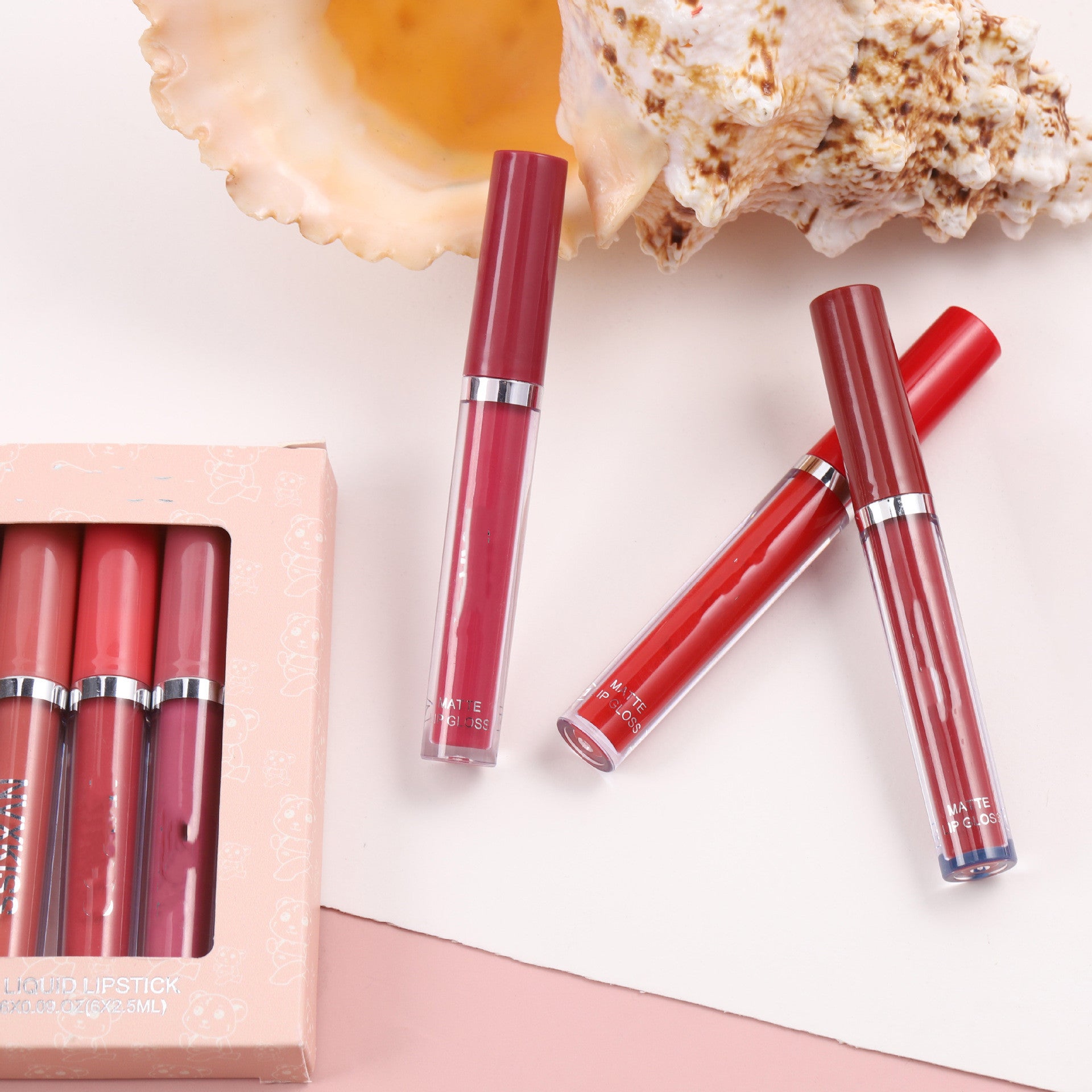 Laca de labios 6 piezas mate sin manchas en la taza lápiz labial líquido mate brillo de labios