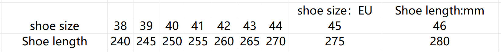 Nota: Recordatorio: esta tabla de tallas es solo de referencia. Si tiene alguna pregunta sobre el tamaño del zapato durante la compra, comuníquese con nuestro servicio de atención al cliente en línea para obtener ayuda.
