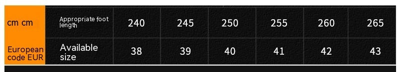 Talla: 38, 39, 40, 41, 42, 43, 44, 45, 46, 47, 48