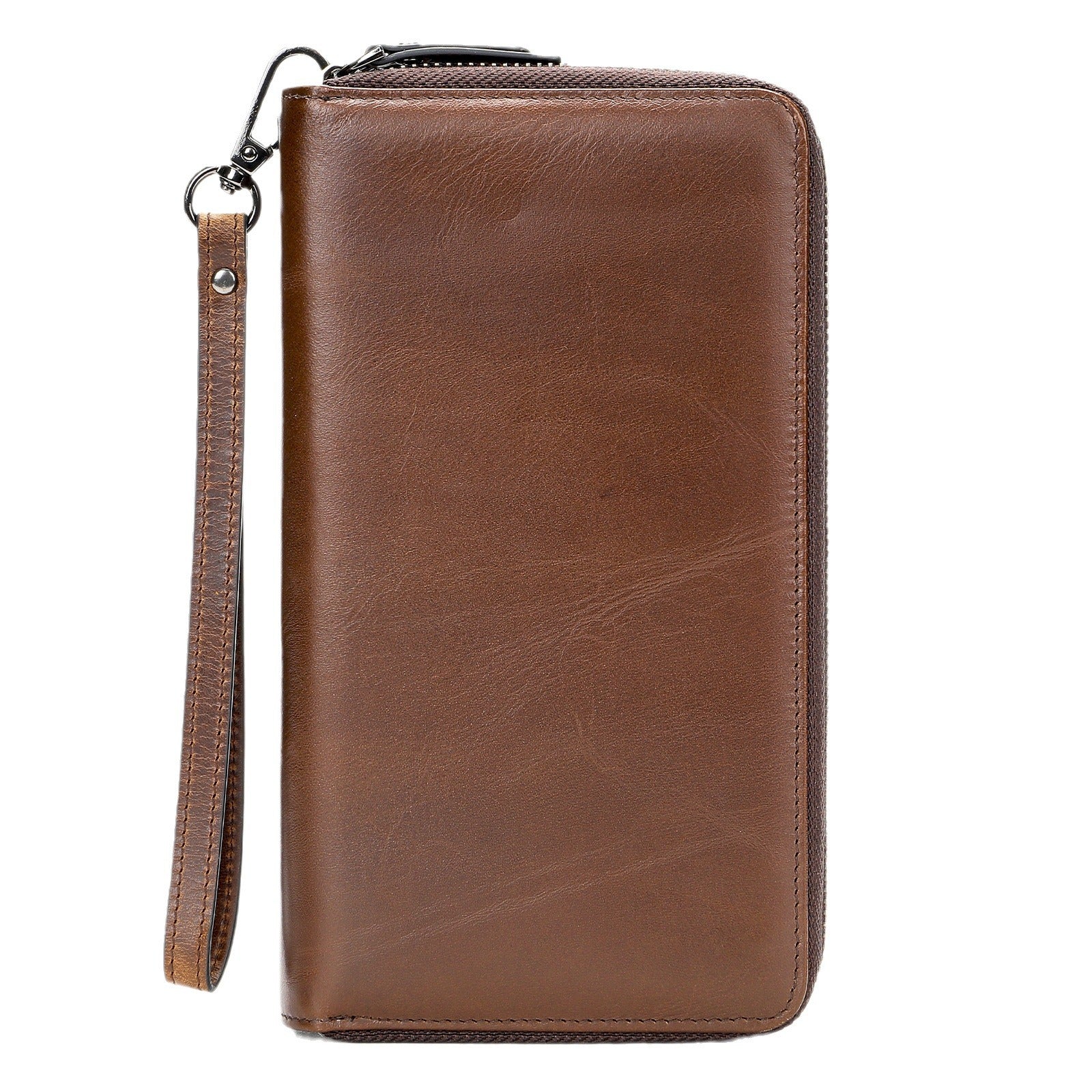 Cartera larga de piel auténtica con cremallera para hombre