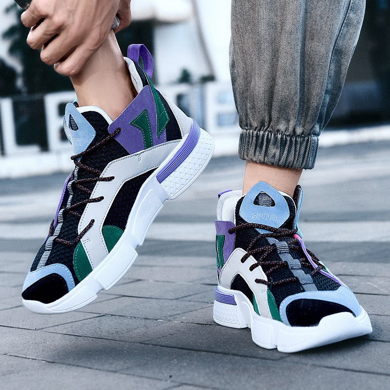 Zapato de tabla alto con superficie de malla transpirable Flyknit de talla grande de verano para hombre