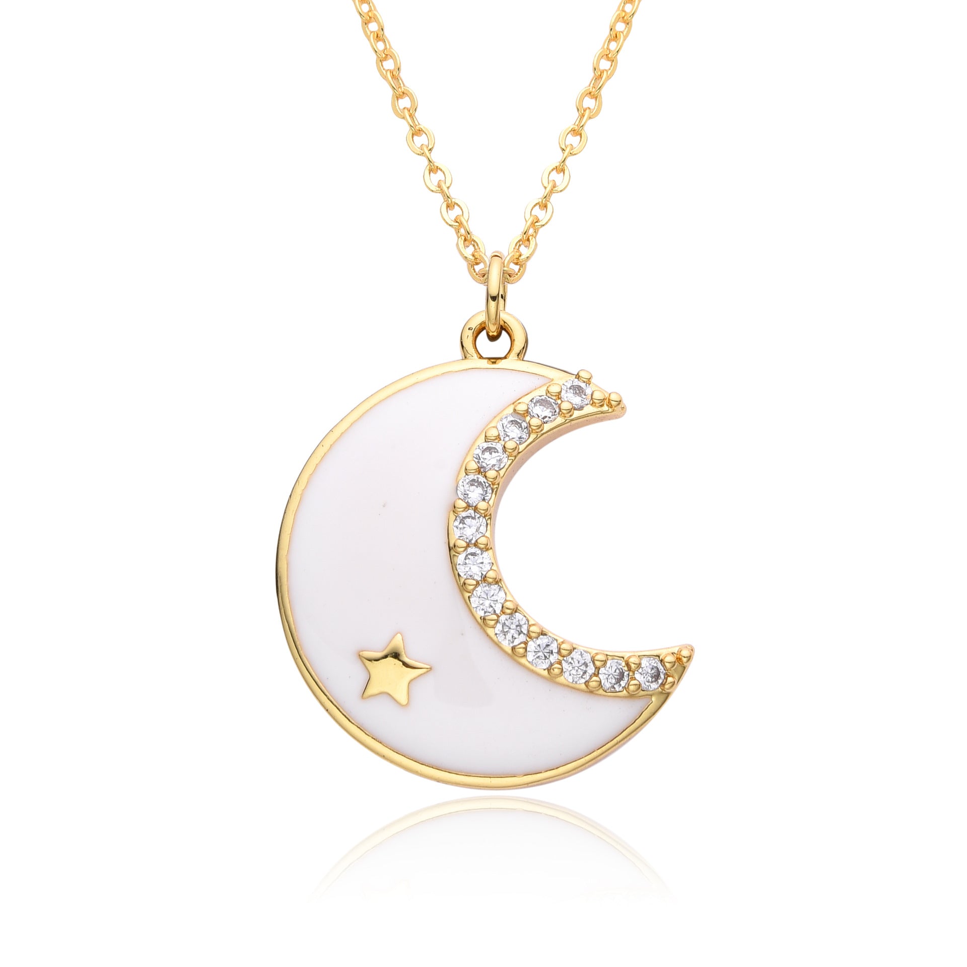 Collar de diamantes lleno de luna con microincrustaciones para mujer