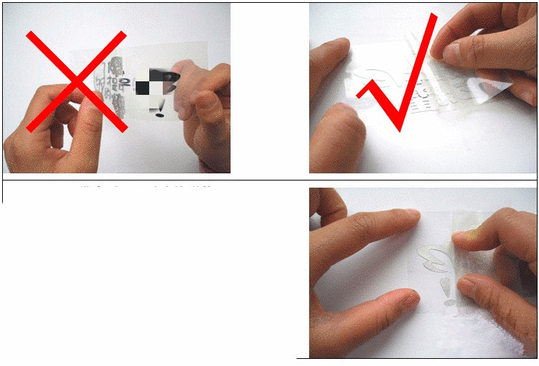3. Si los gráficos son muy pequeños, también puedes quitar toda la película de transferencia transparente y las pegatinas antes de pegarlos. Pero hay que tener cuidado de no pegarse accidentalmente.