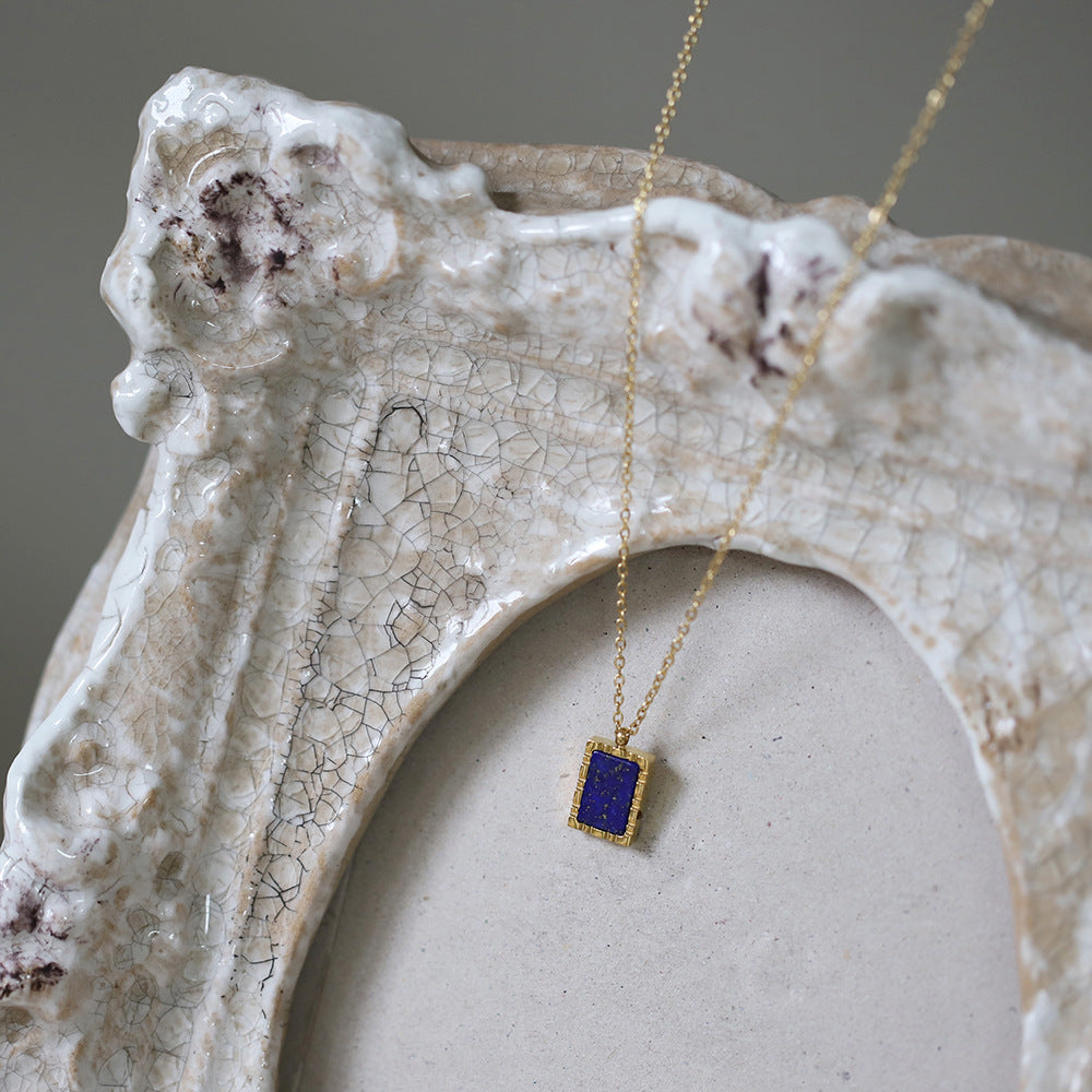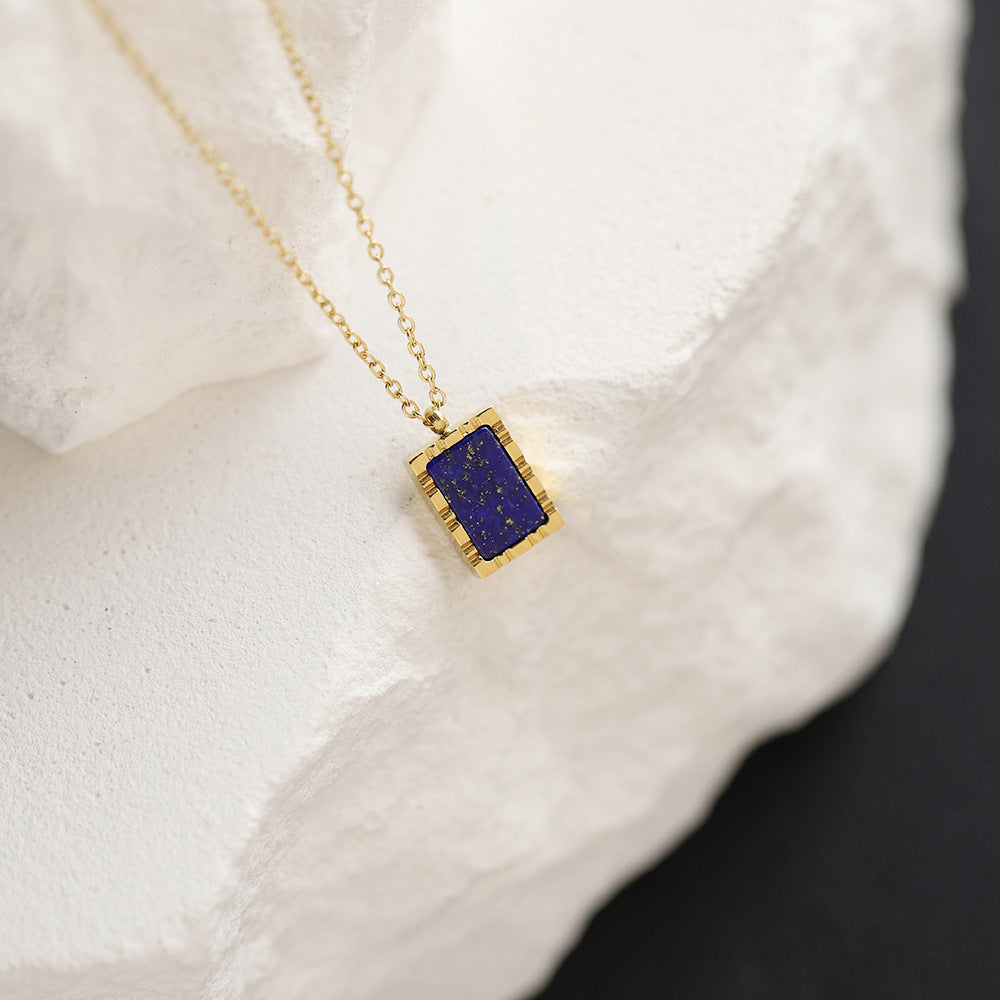 Collar de cadena de clavícula geométrica con rociadores de oro cuadrado de lapislázuli natural