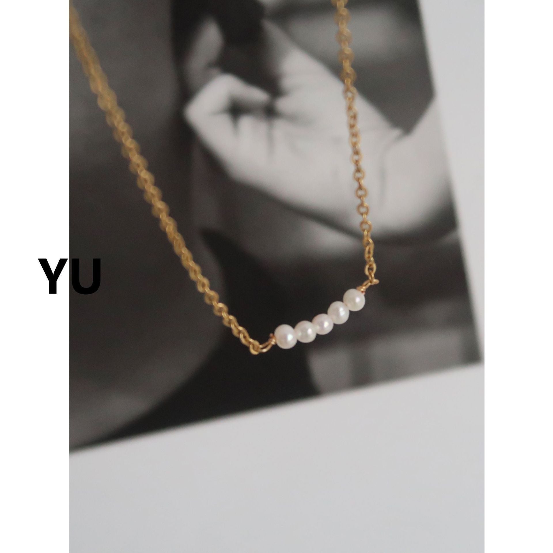Collar de acero de titanio sencillo con perlas de grano de arroz natural