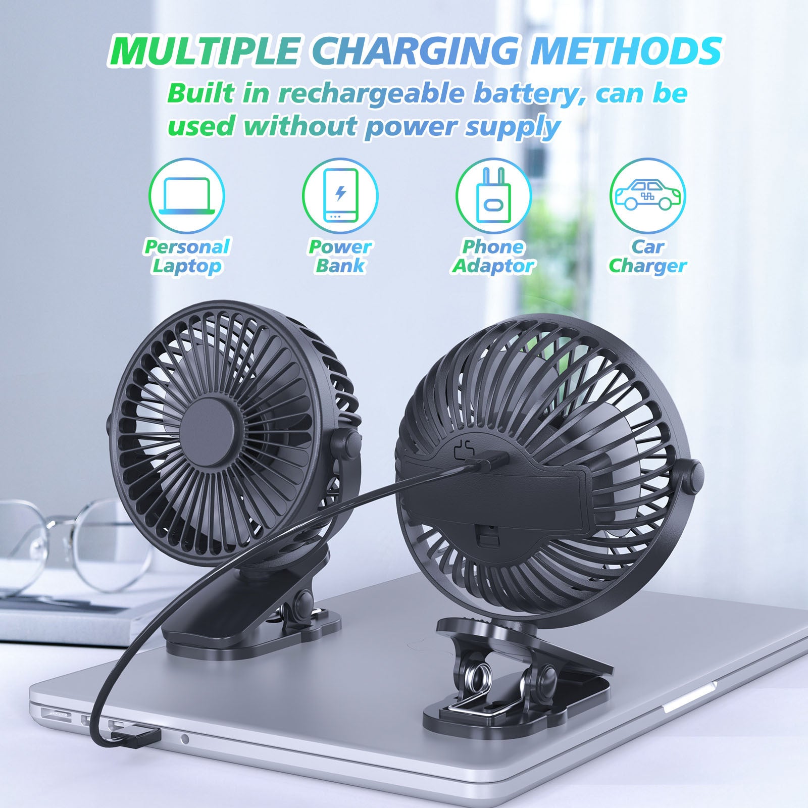 Portable Clip On Fan Battery Operated, Small Powerful USB Desk Fan, 3 Speed Quiet Rechargeable Mini Table Fan, 360 Rotate Cooling Fan For Home Office Travel Outdoor&Indoor Treadmill