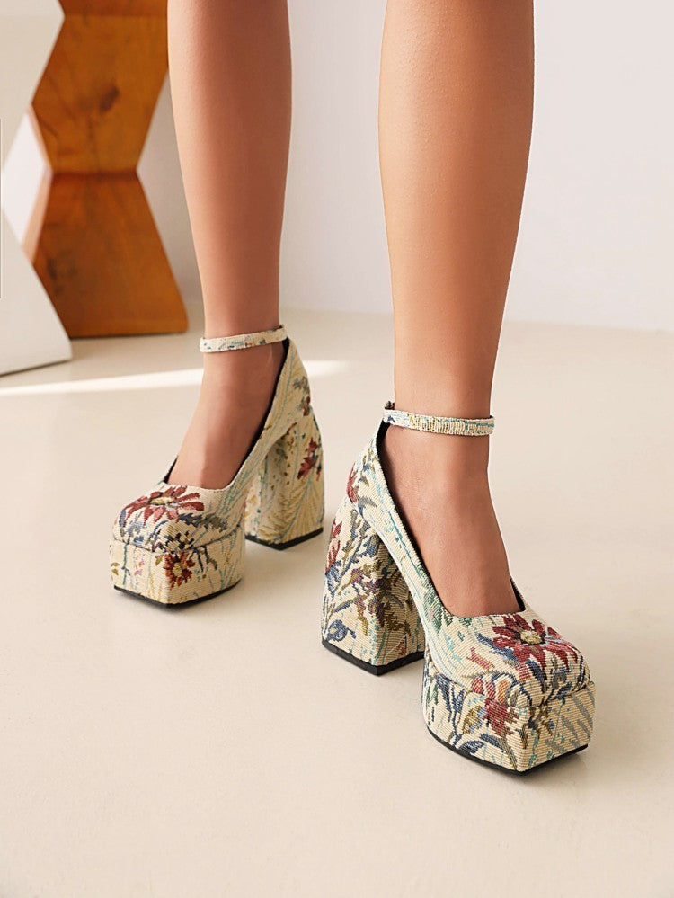 Tacones gruesos de mujer con tacón súper alto de boca poco profunda