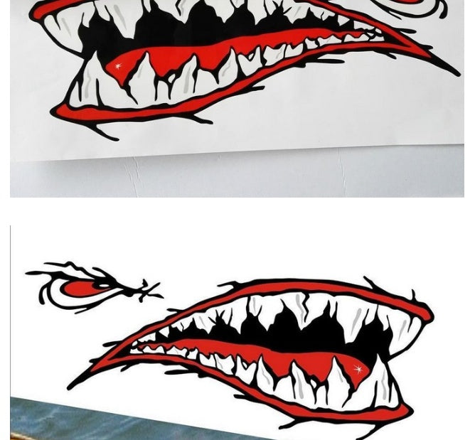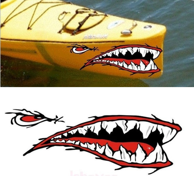 Etiqueta engomada del coche nuevo del kayak de la boca de los dientes del tiburón