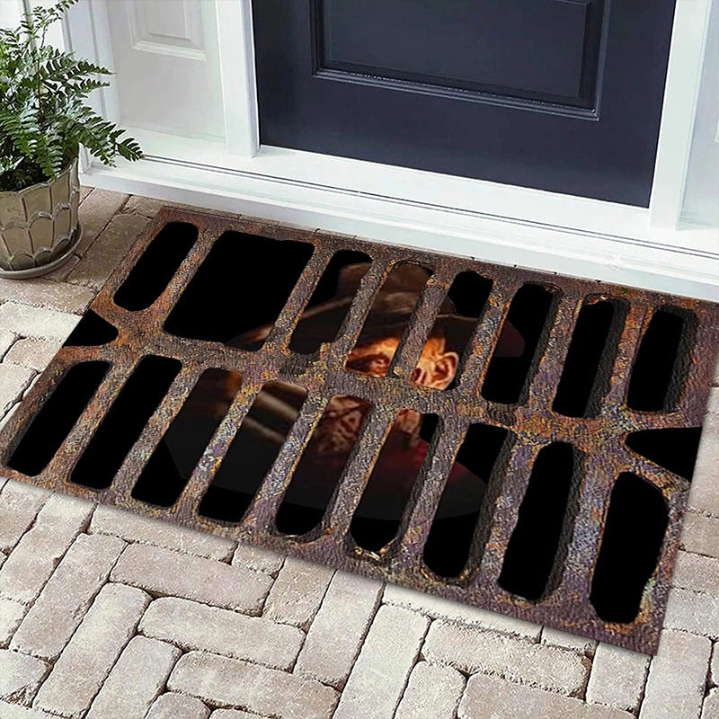 Alfombra de suelo a cuadros 3D, alfombra de puerta de payaso de Halloween, alcantarillado