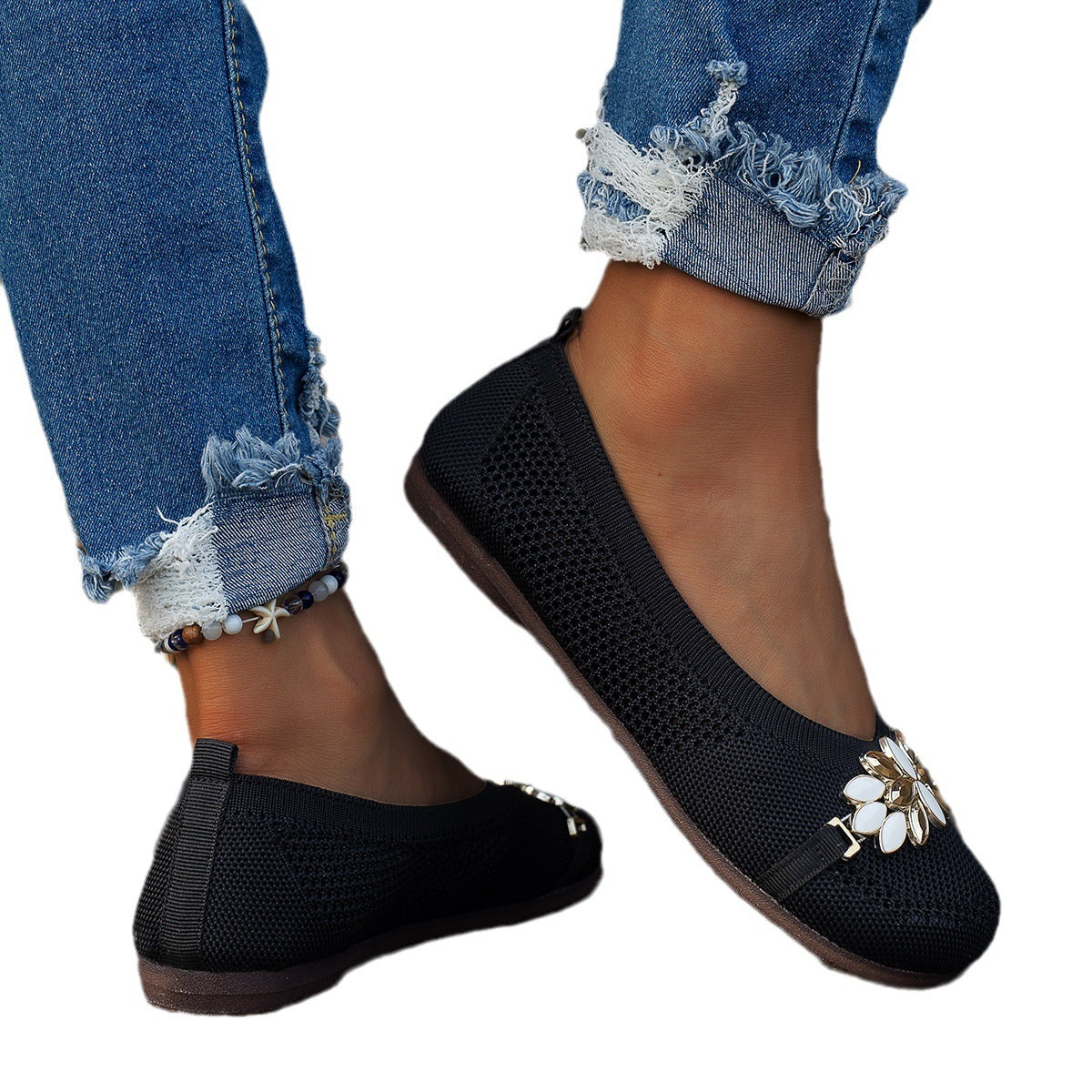 Gommino Top bajo de punto con tacón plano para mujer