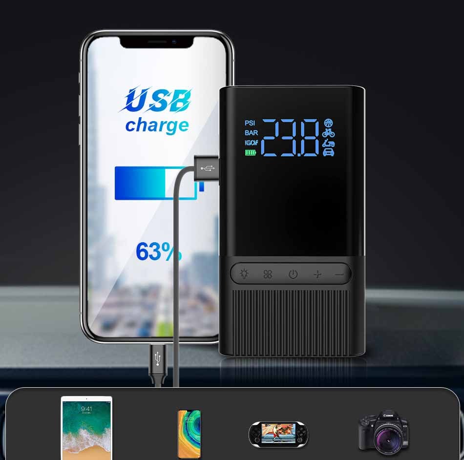 Ámbito de aplicación: puede inflar coches, coches eléctricos, motocicletas, pelotas, flotadores y otros artículos.