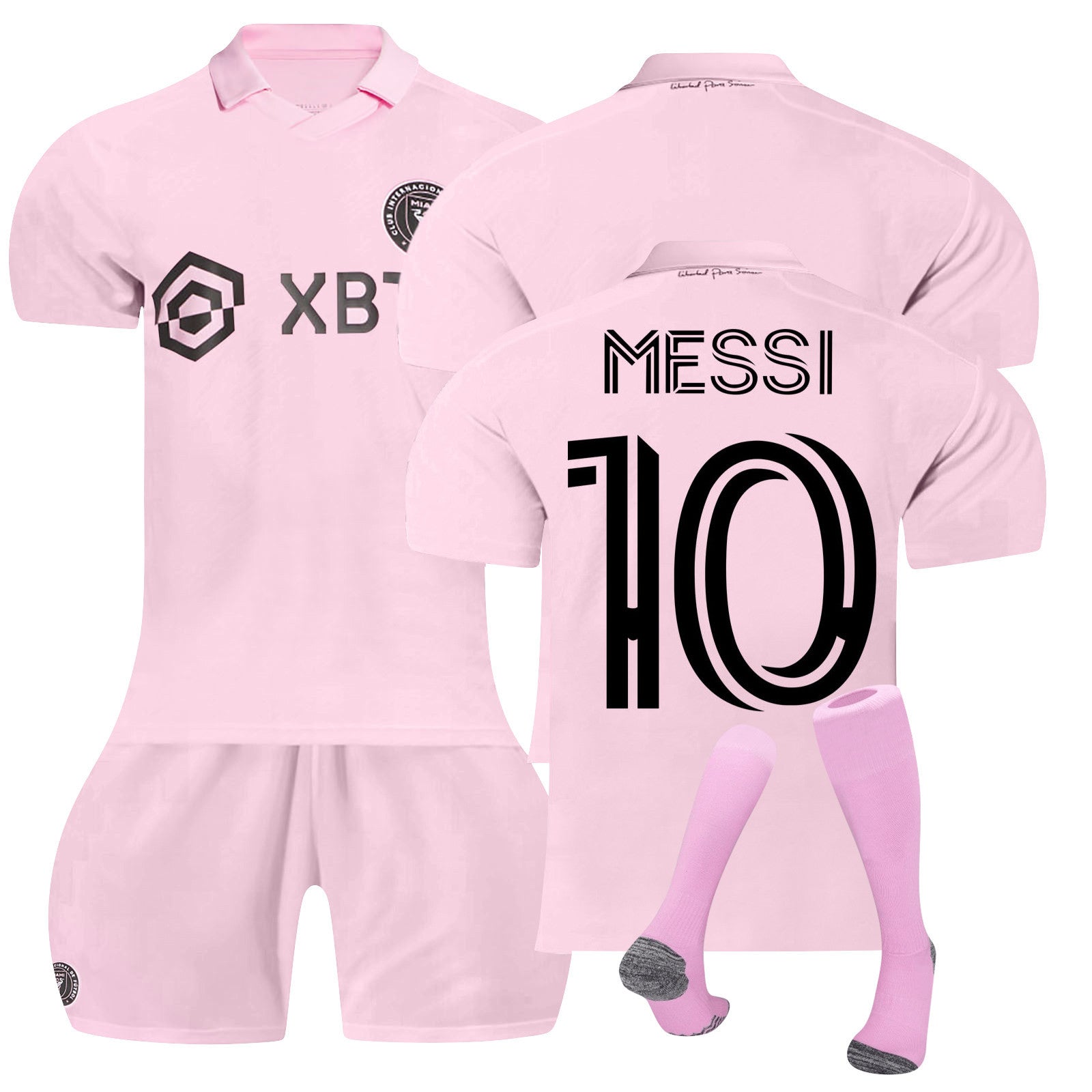 Inter Miami Messi No10 Kit de fútbol Partido en casa Camiseta de fútbol Camisetas de chándal Conjunto de pantalones cortos y calcetines para niños y hombres Conjunto de camiseta de fútbol para niños Jerseys Traje deportivo Chándal Trajes de entrenamiento
