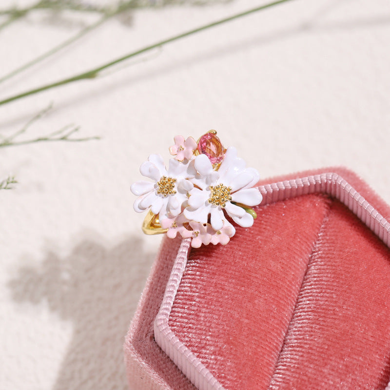 Anillo Flor Encaje Verbena Circonitas Oro