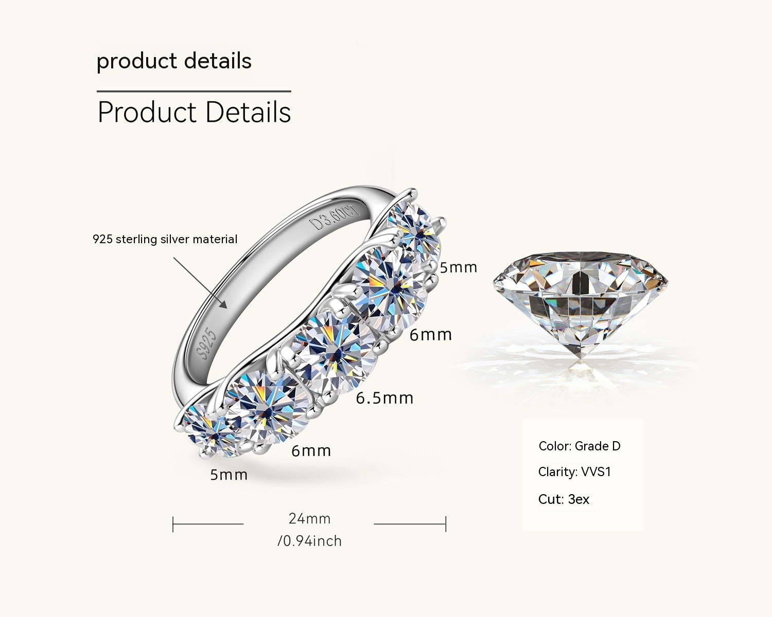 Anillo de moissanita de plata 925 estilo Ins de lujo ligero