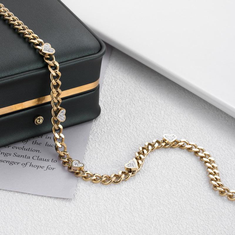 Collar de corazón de acero y titanio con Micro diamantes de imitación, diseño ligero de lujo, minoritario, a la moda