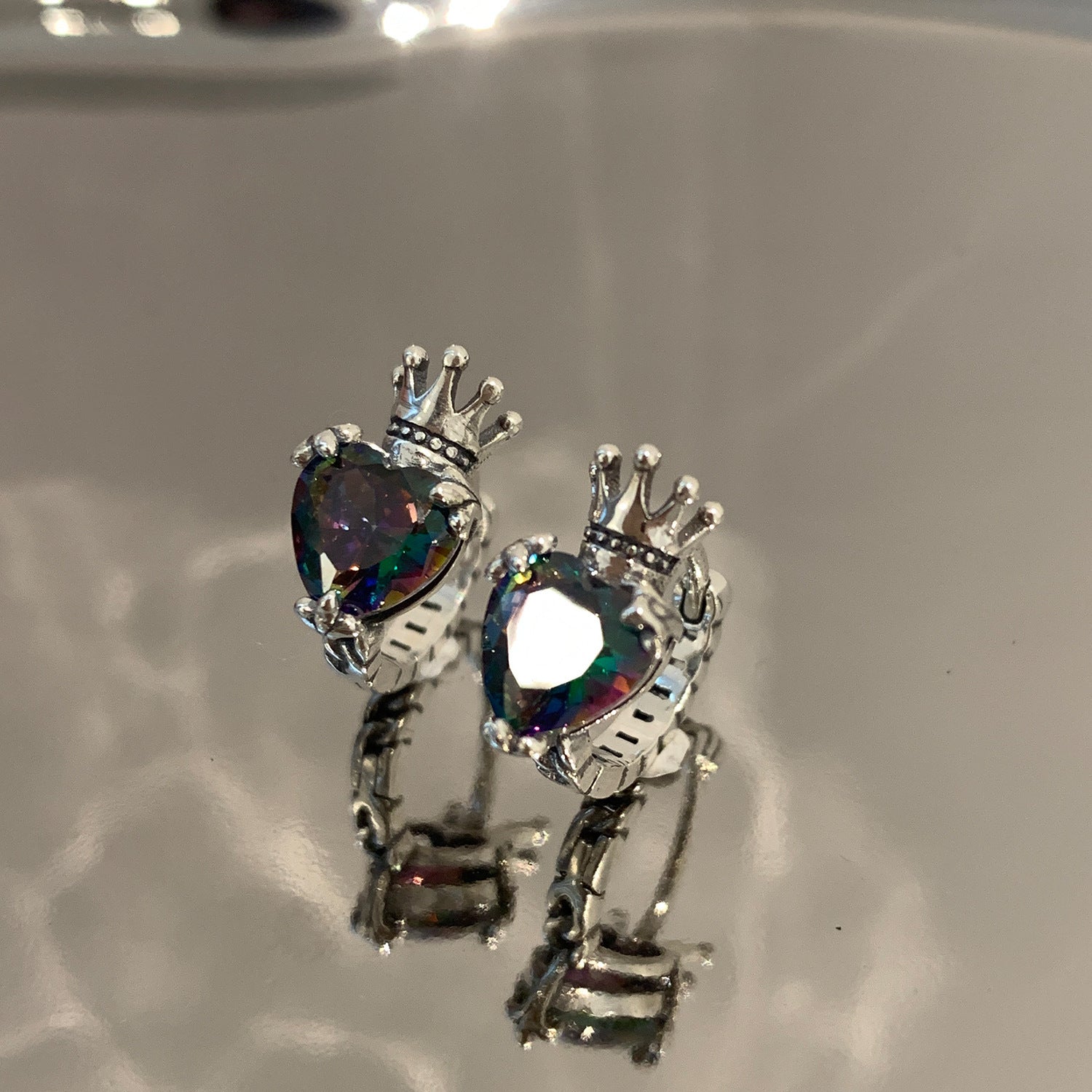 Color: Pendientes coloridos de corona (plata arcaica chapada en cobre)