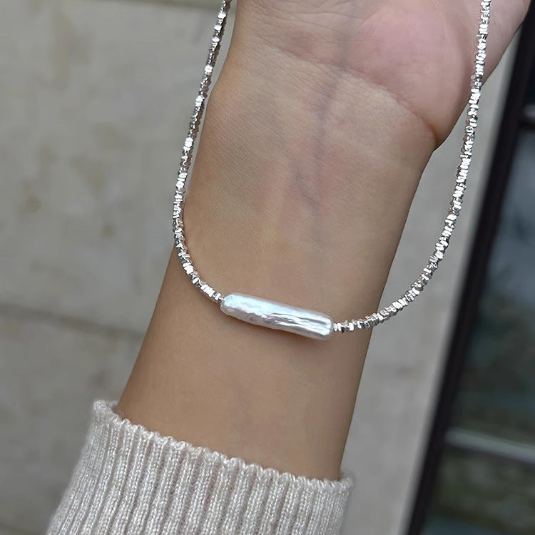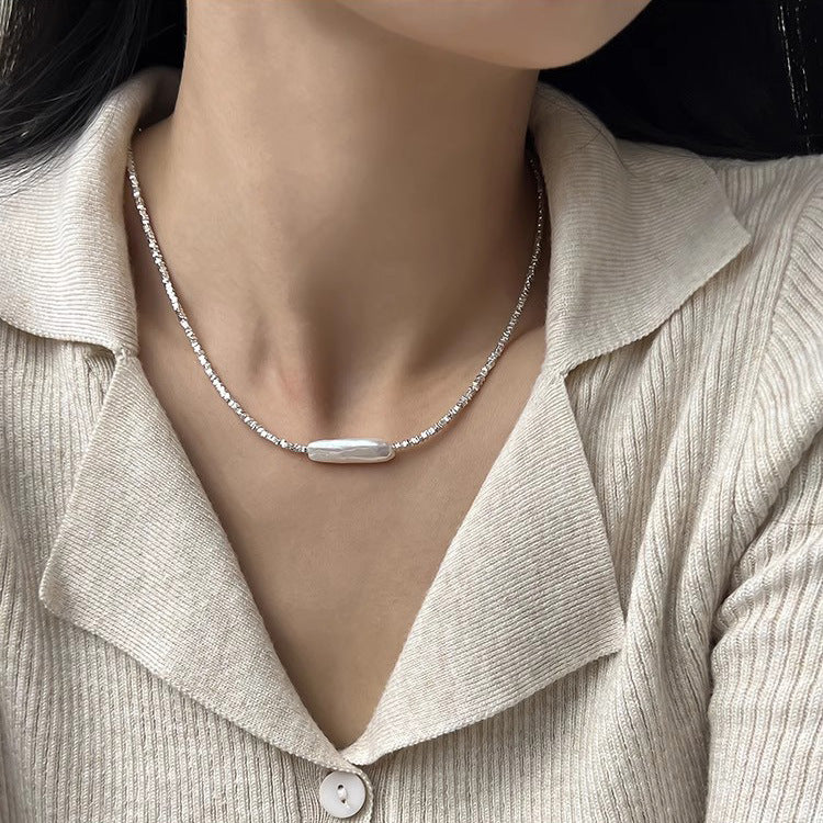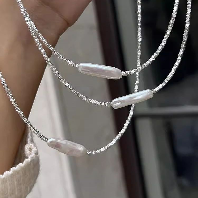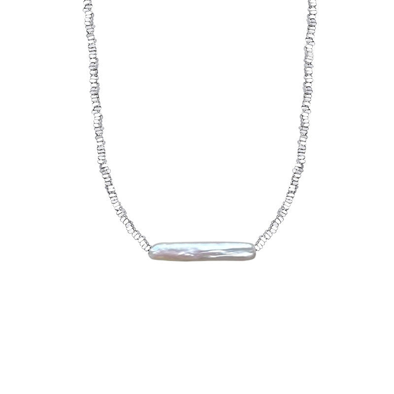 Color: pequeña barra de plata Collar de perlas de piezas pequeñas de plata-Plata