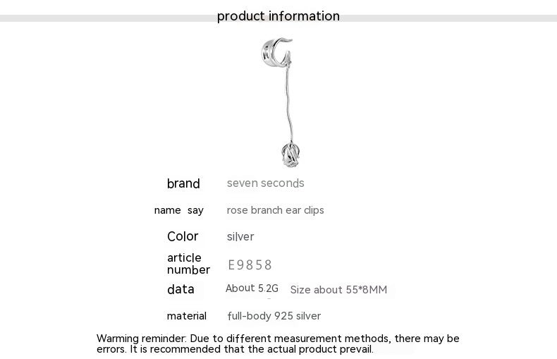 Pendientes de plata de ley S925 con clip de oreja rosa sin orejas perforadas