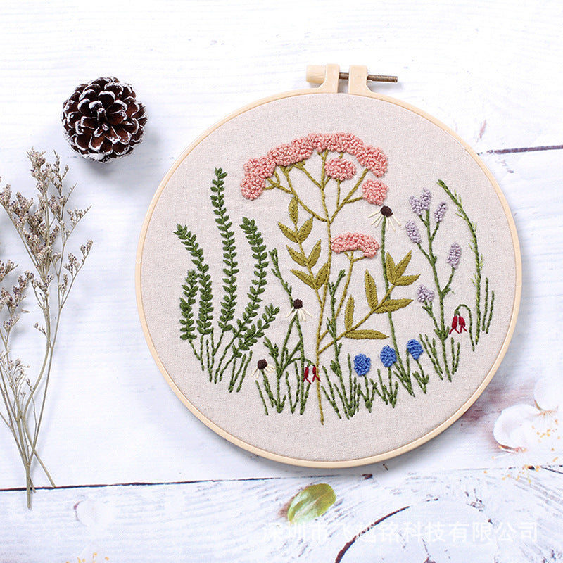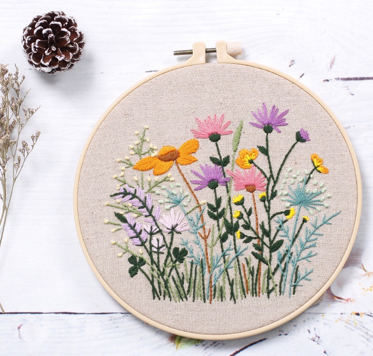 Tissu brodé * 1, fil à broder * 1, aiguille à broder * 2, dessins tutoriels * 1, tension de broderie imitation bambou * 1