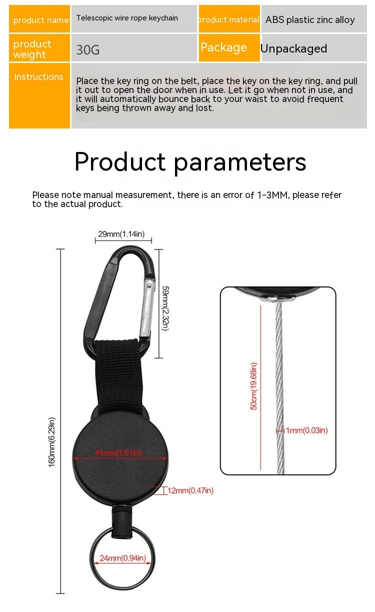 Champ d'application : clé suspendue, lampe de poche, etc.