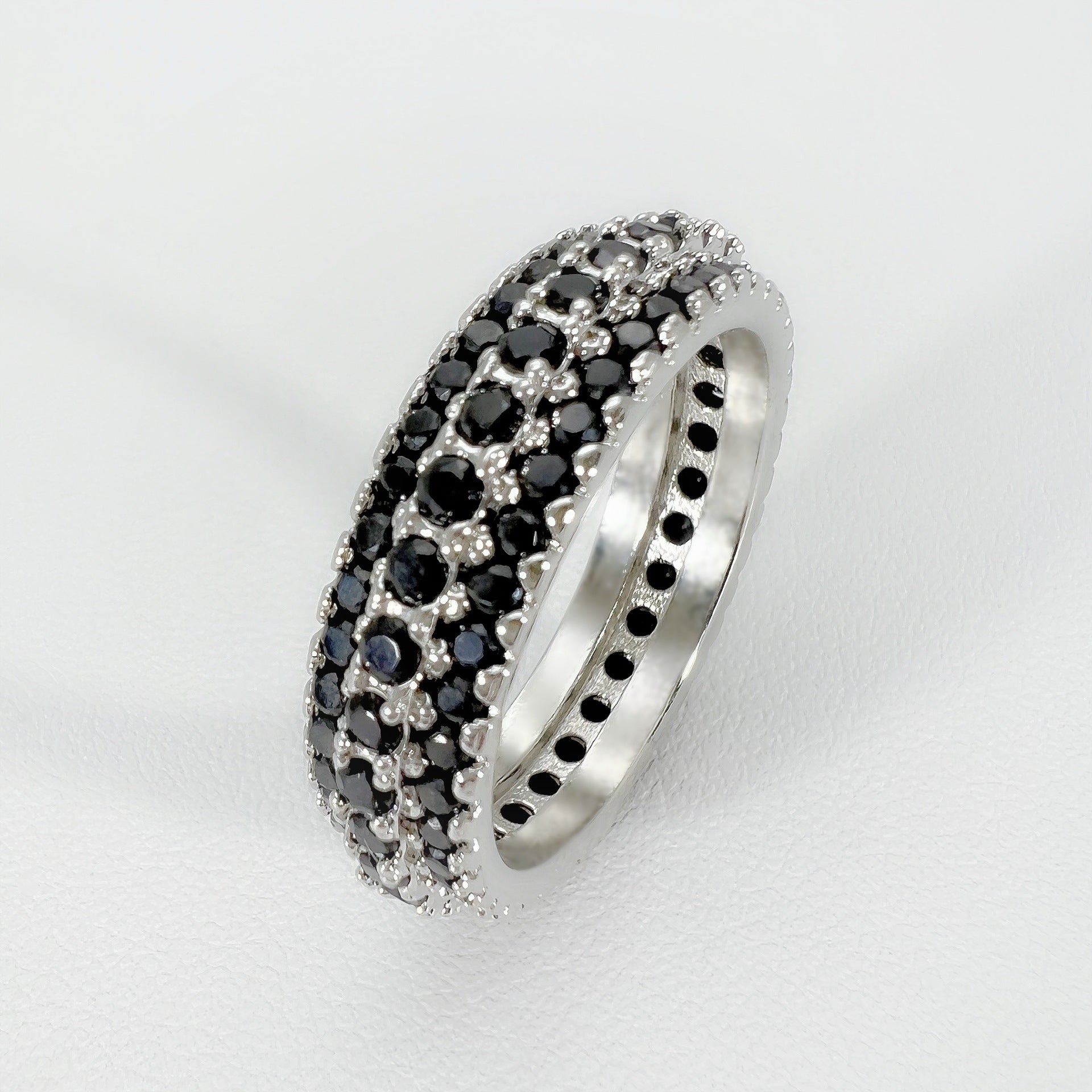 Bague en zircon incrustée de micro-perceurs à trois rangées de diamants haut de gamme