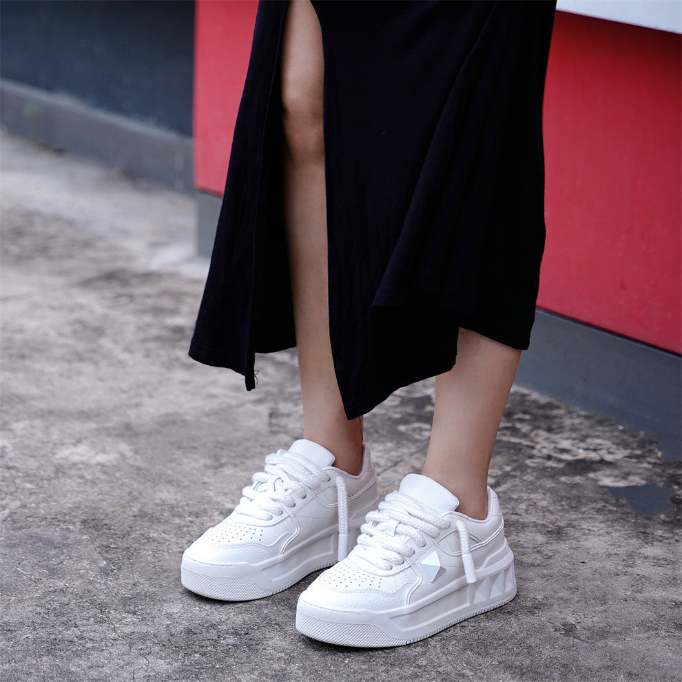 Chaussures décontractées pour femmes, version haute, rivets, table surélevée