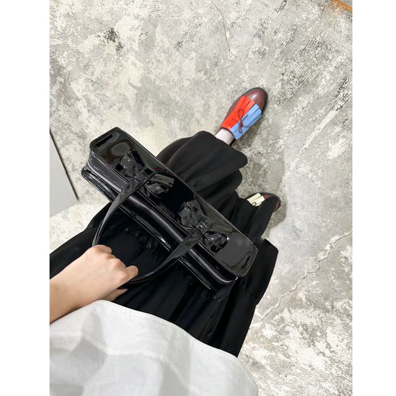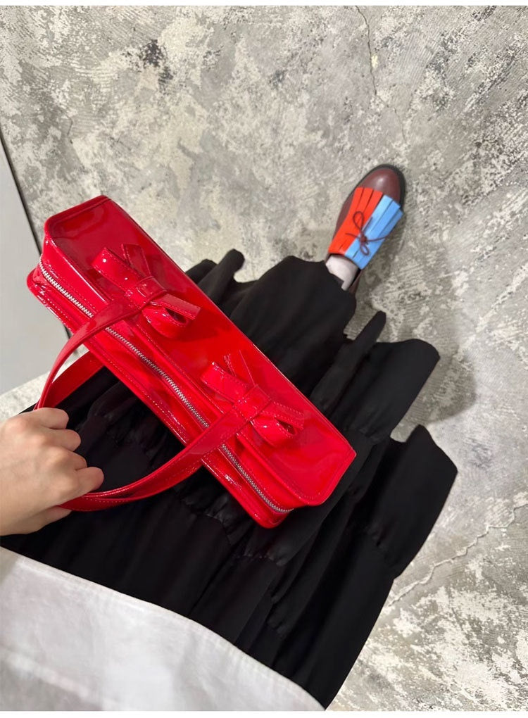 Japanese Cute Patent Leather Glossy Bow Decoration Baguette Bag