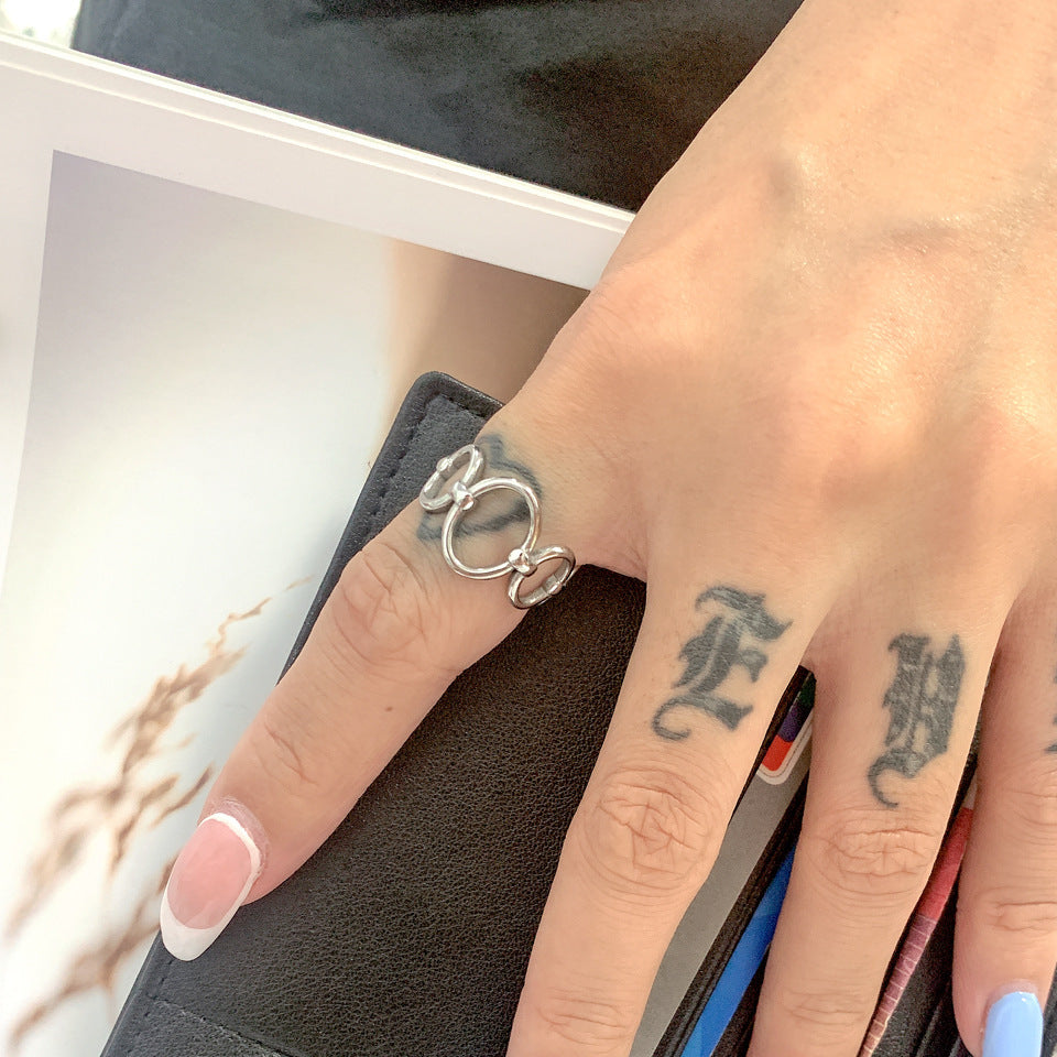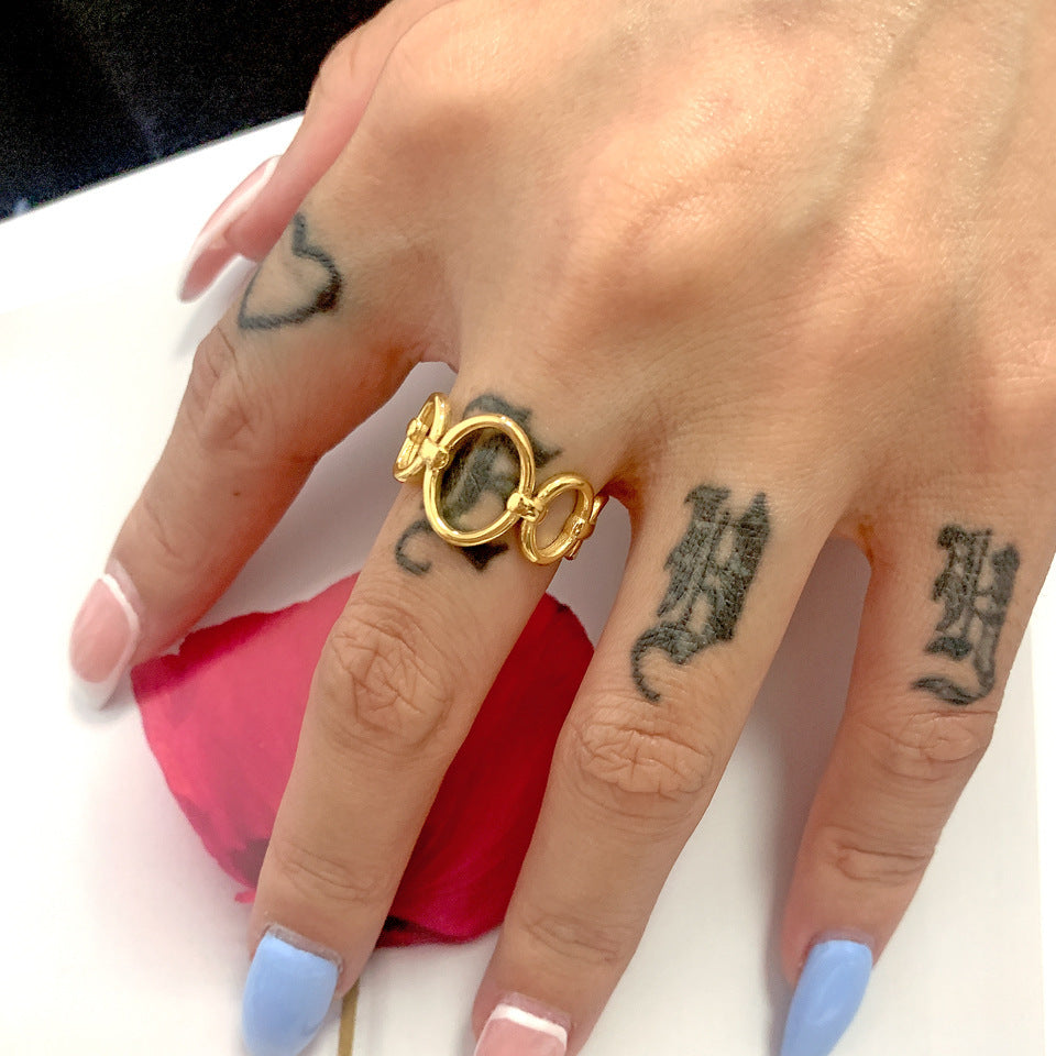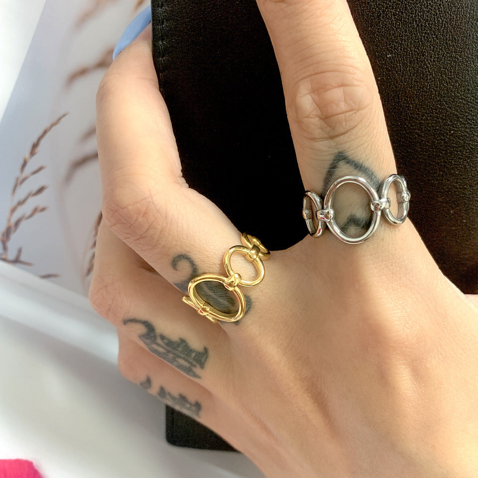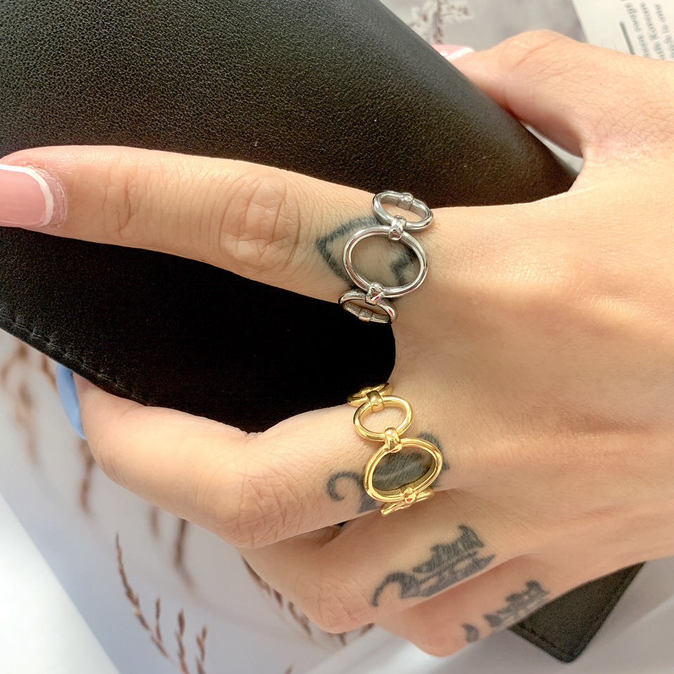 Minimal Art Acier inoxydable Géométrique Ellipse Épissage Index Titane Acier Plaqué Or 18K Bague