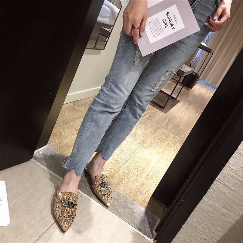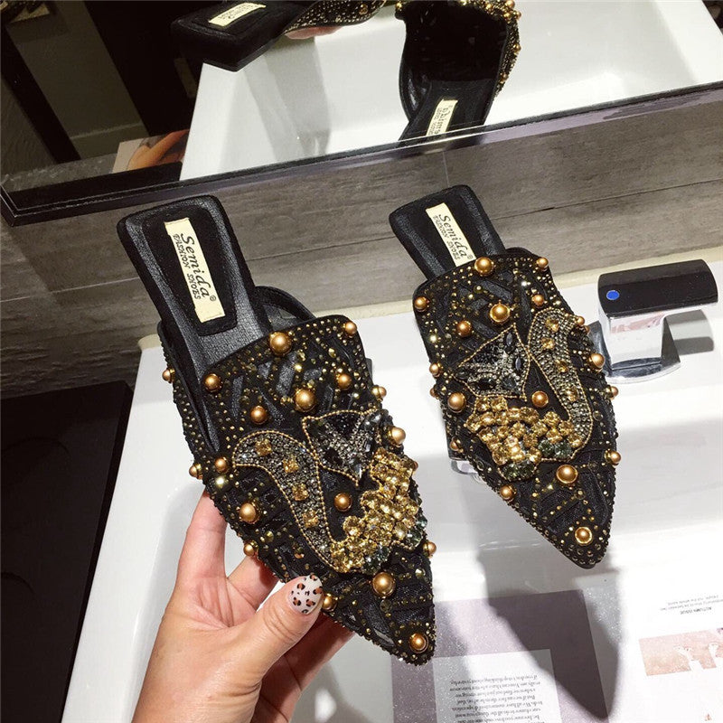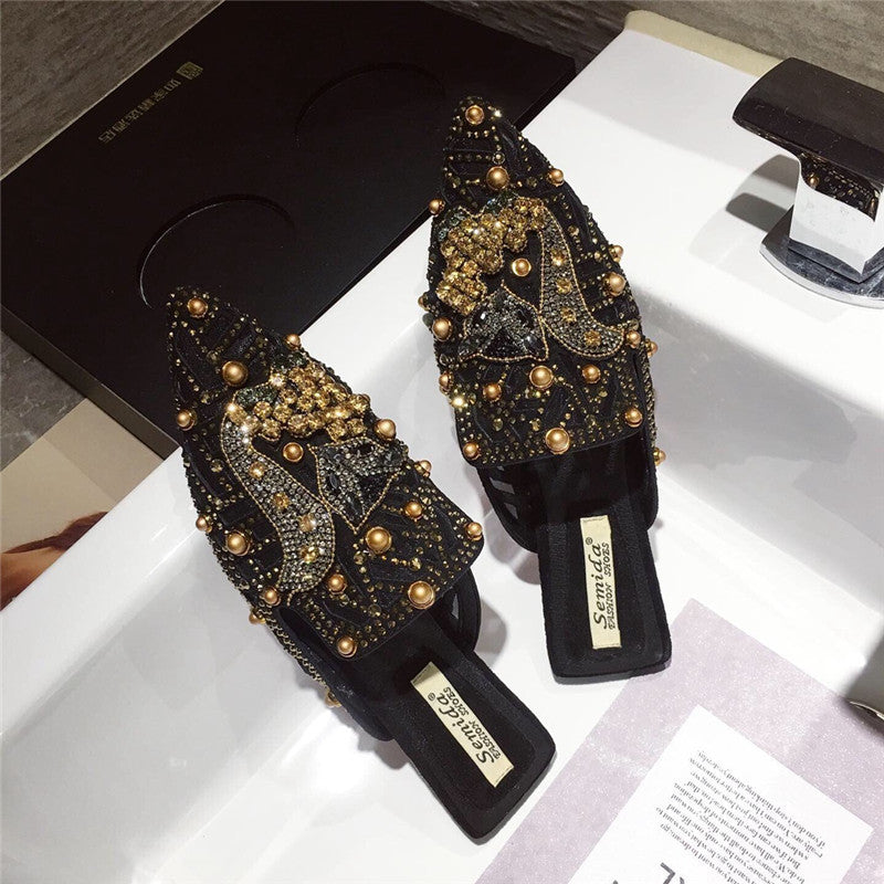 Demi-pantoufles à bout fermé de grande taille pour femmes, fond plat