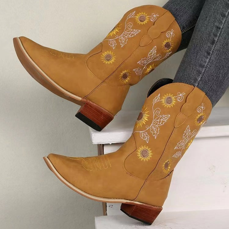Bottes Knight Dr Martens grande taille brodées mode femme mi-mollet