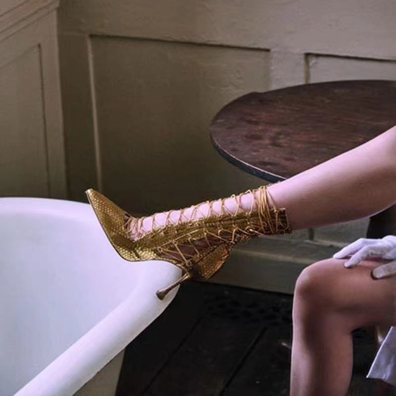 Bottes à talons hauts avec fermeture éclair et sangle creuse à bout pointu