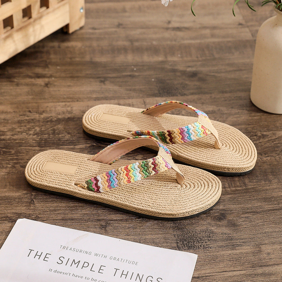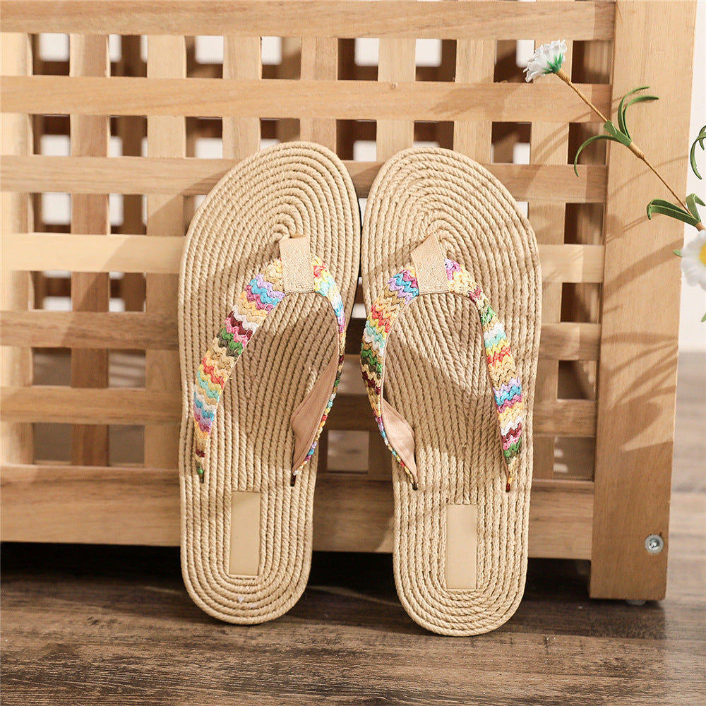 Tongs tissées en herbe PP pour femmes, été