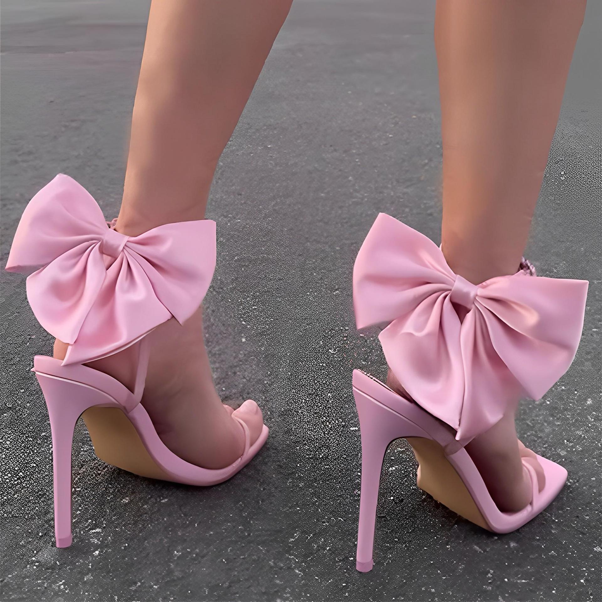 Sandales à talons aiguilles en strass avec nœud à l'arrière