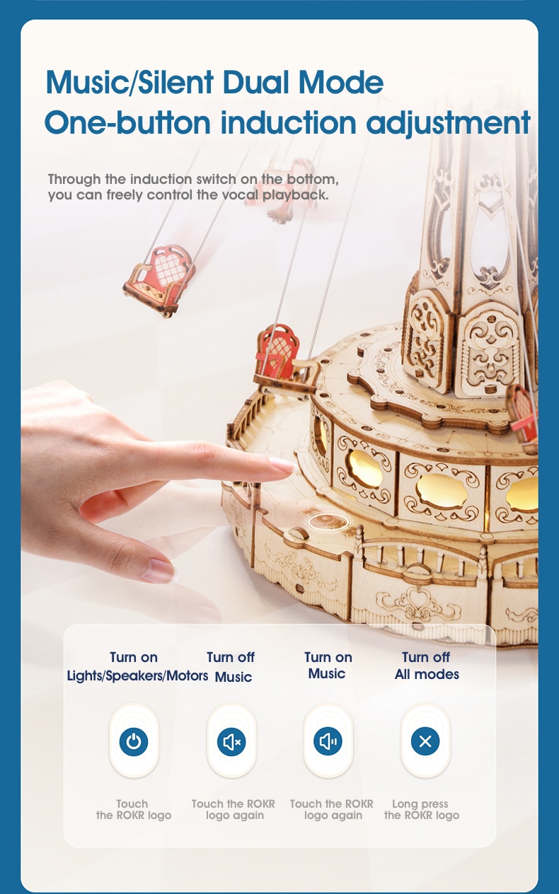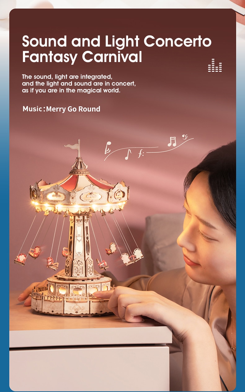 Robotime Rokr parc d'attractions magique balançoire tour 3D puzzles en bois Kit de modèle de Construction bricolage boîte à musique Kits de Construction rotatifs