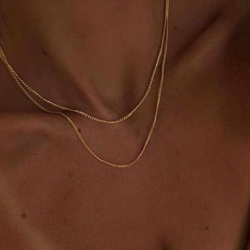 18k Plated Double-layer Flat Curb Necklace Gold Necklace