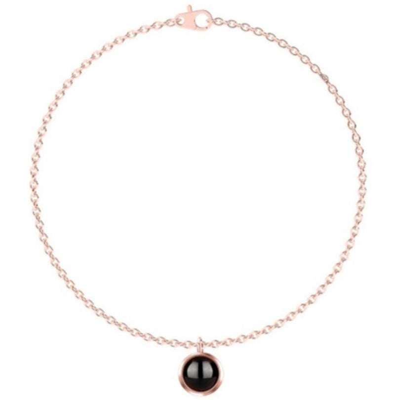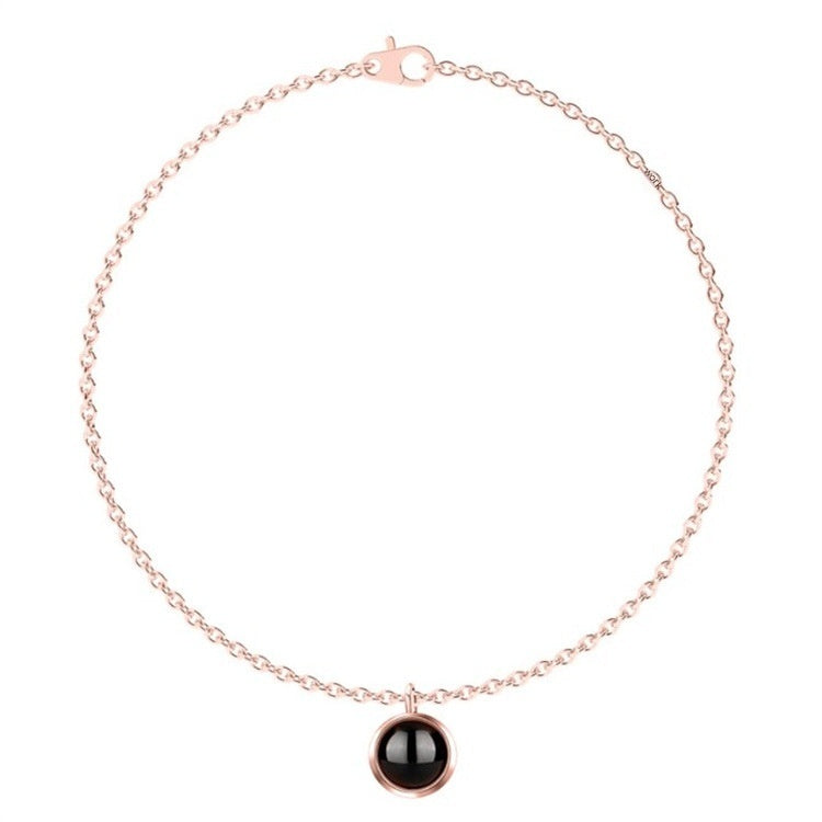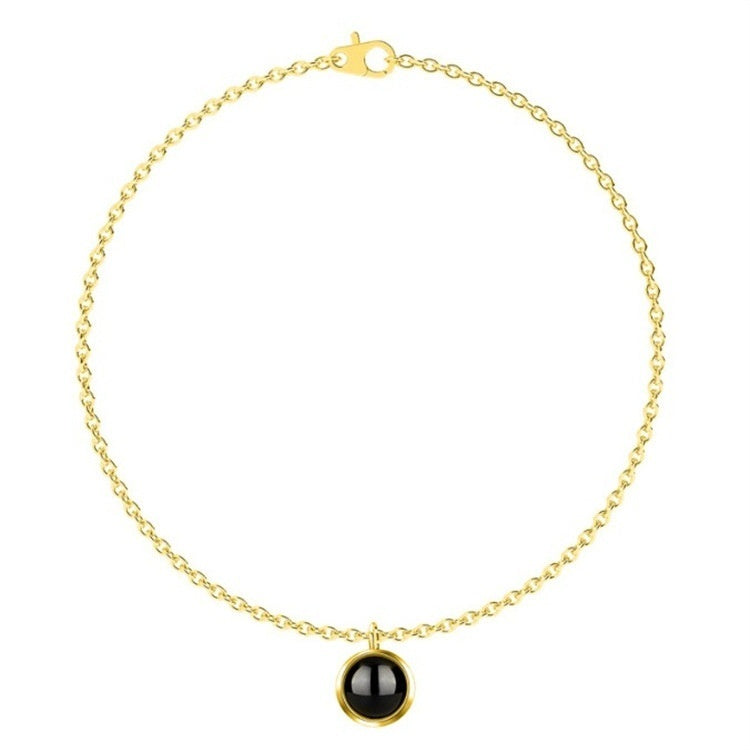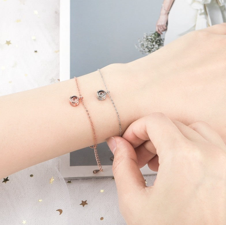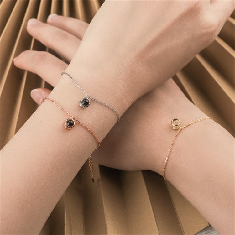 925 Silver O-shaped Plain Chain Couple Bracelet Micro-carved 100 Languages Custom Color Text Cross-border