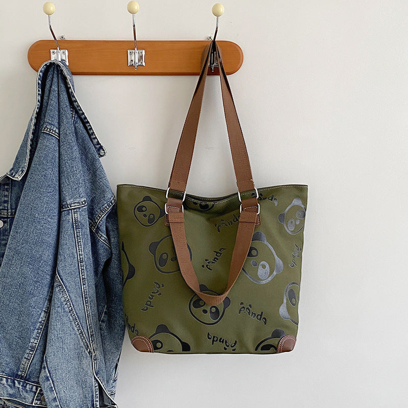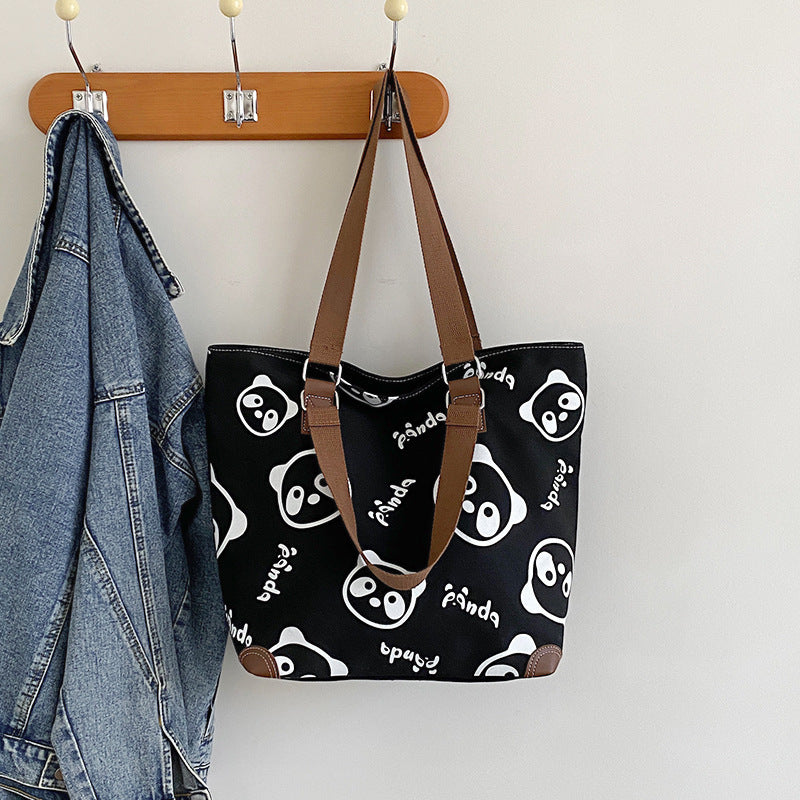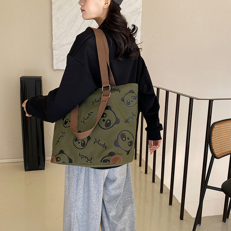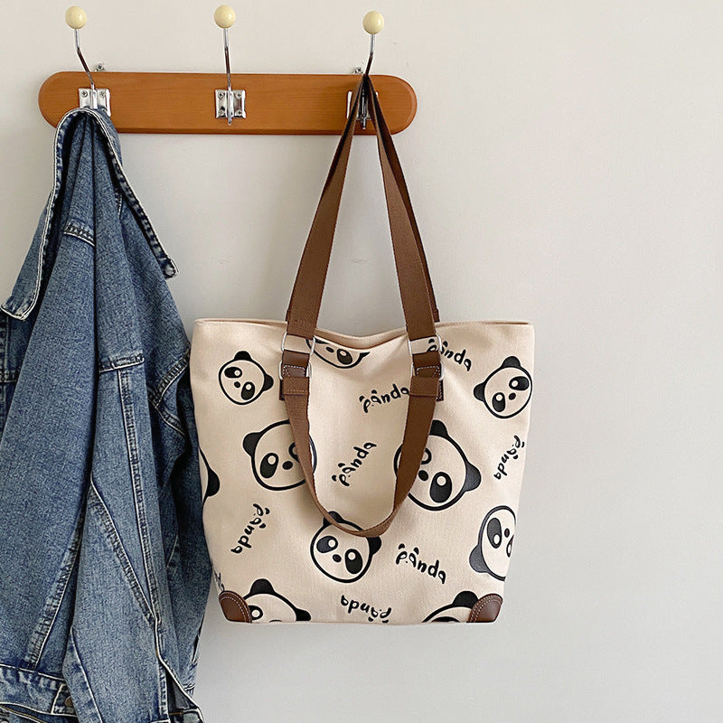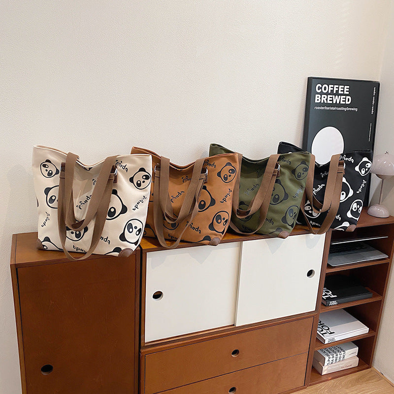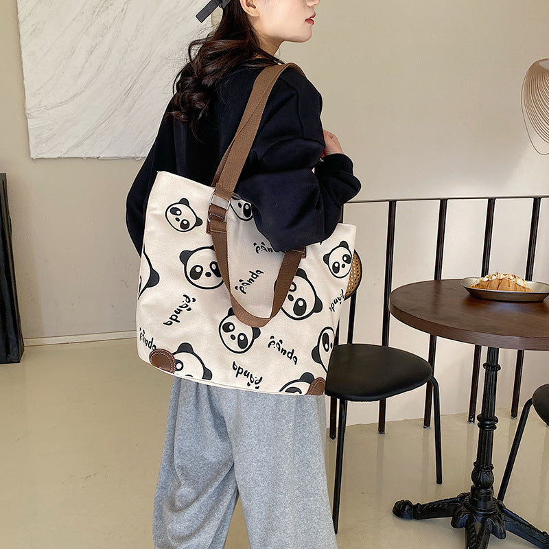 Sac en toile Panda mignon, sac à bandoulière décontracté de dessin animé féminin