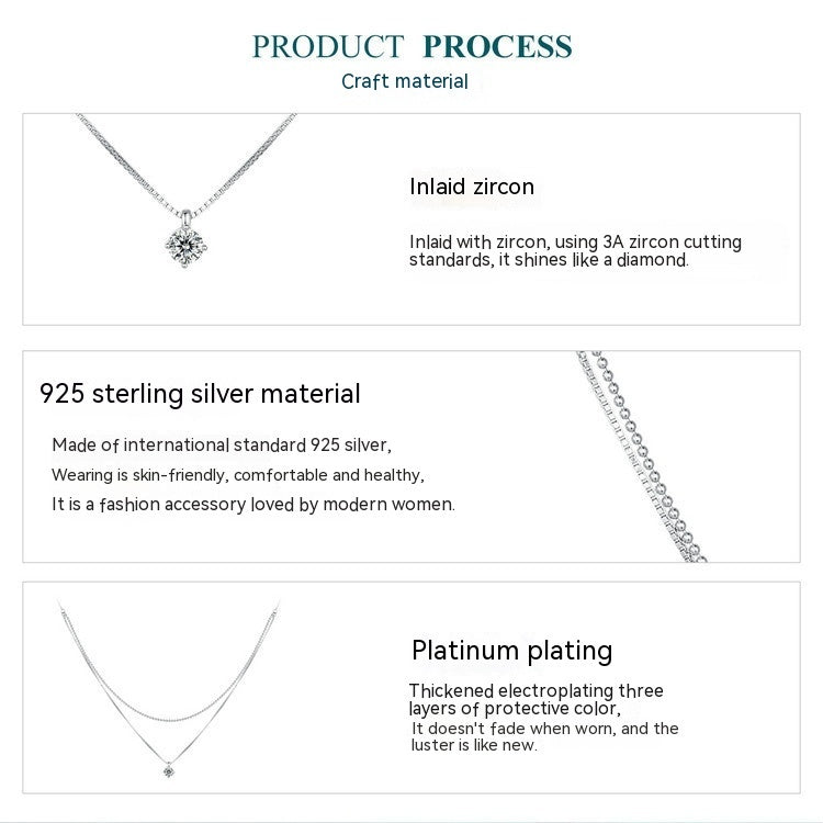 Chaîne de clavicule Double couche brillante de haute qualité, légère, de luxe, col en v, en argent Sterling S925
