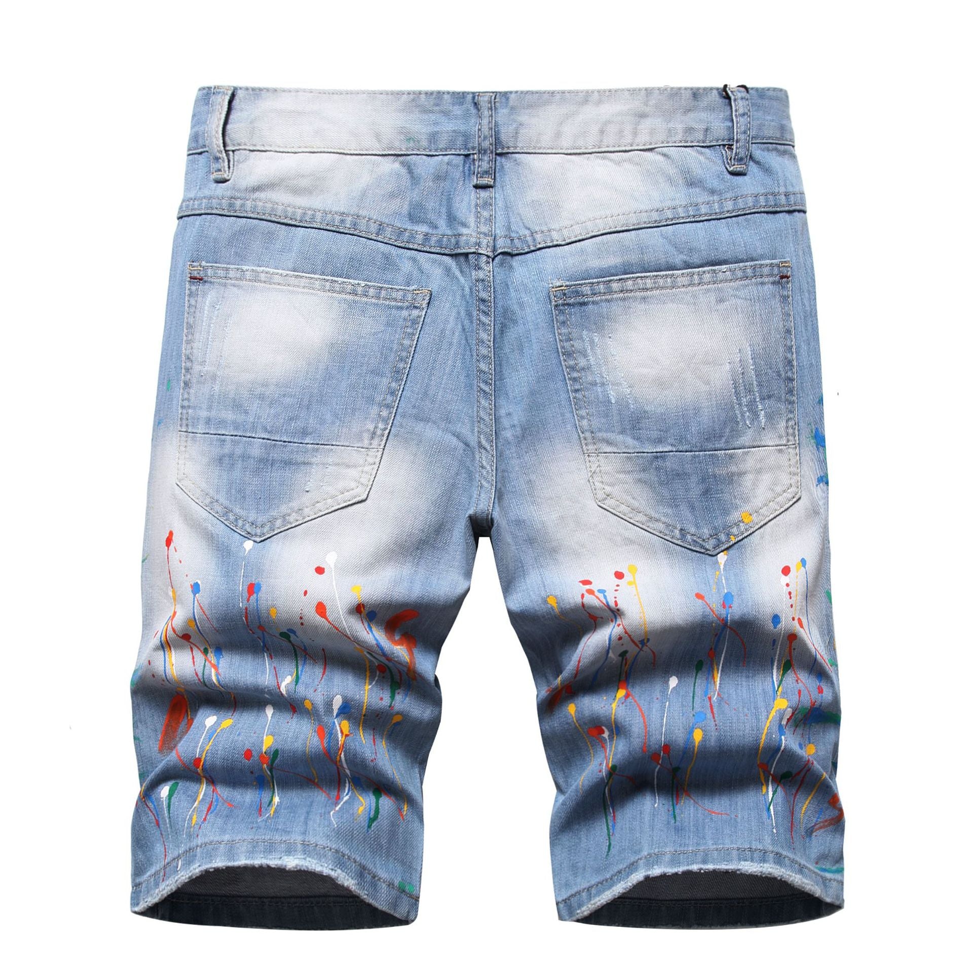 Hip Hop Style Hand-tied Color Ripped Denim Middle Pants Men
