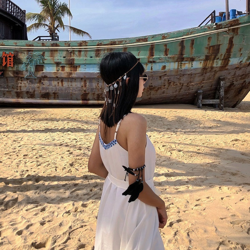 Hippie Daim Coin Bohème Perlé Gland Collier Bande De Cheveux À Double Usage