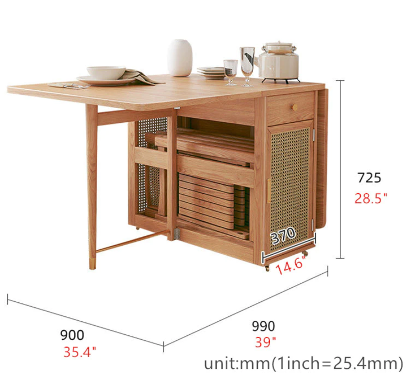 Table à manger pliante multifonctionnelle en rondins de rotin pour la maison