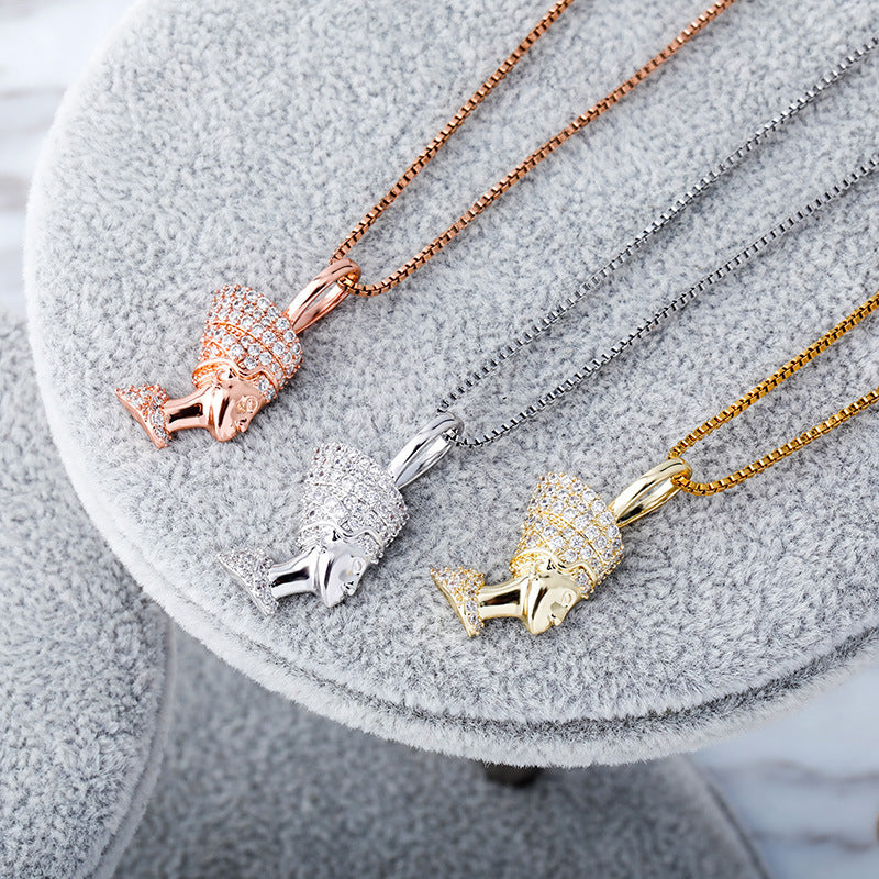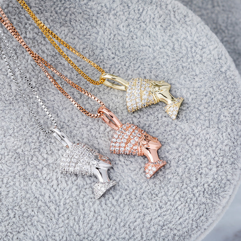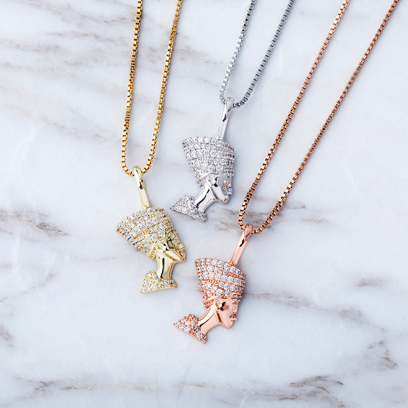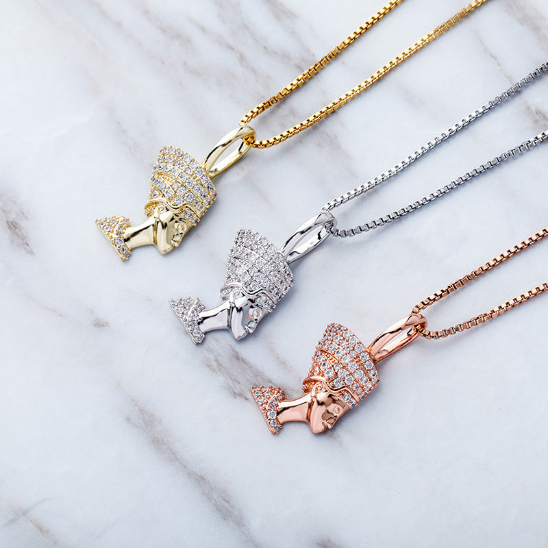 Reine Naftiti tête Portrait Hip Hop pendentif complet Zircon 925 argent dames collier