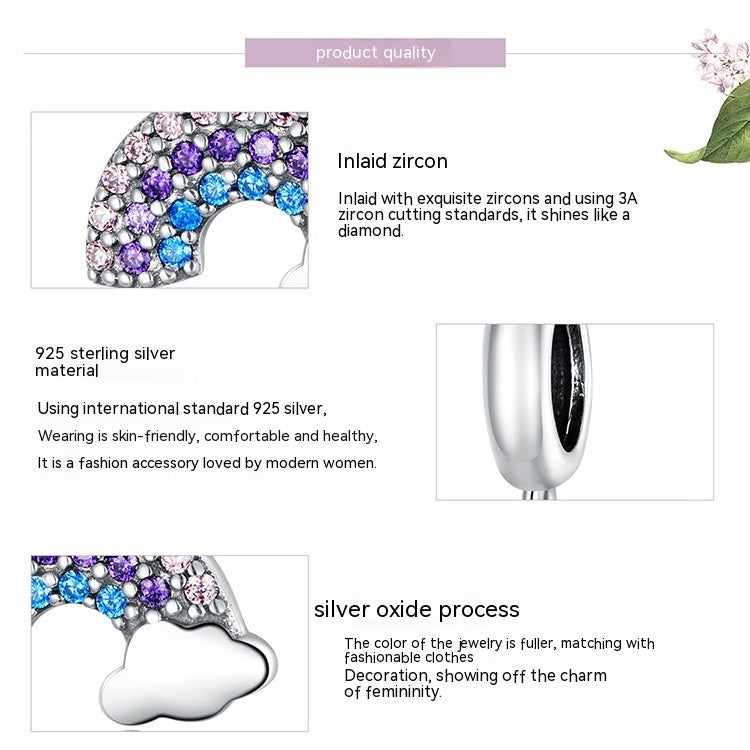 Accessoires d'ornements de pendentif en argent sterling S925 de couleur arc-en-ciel