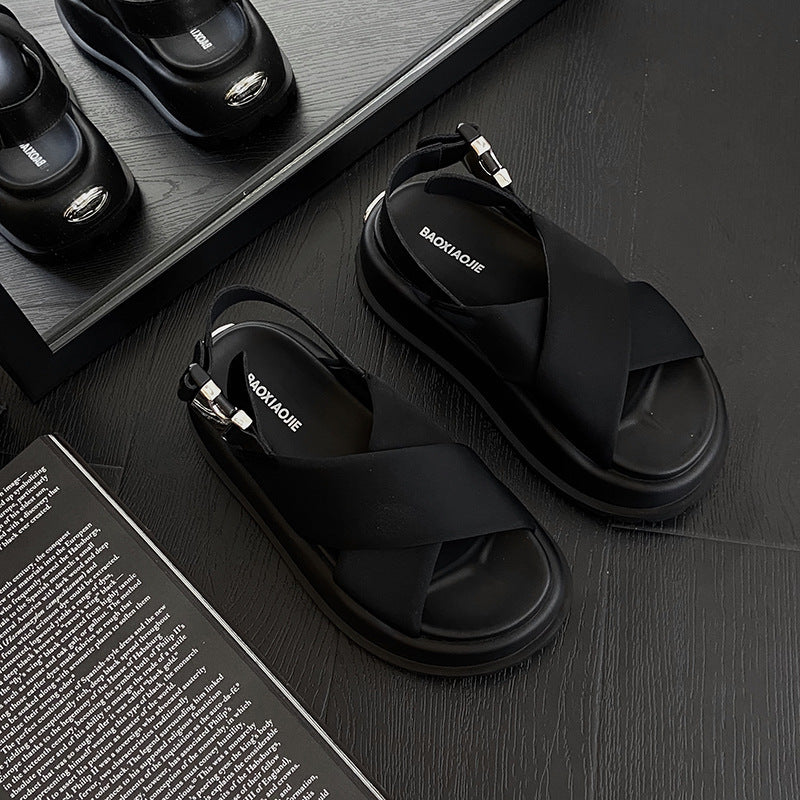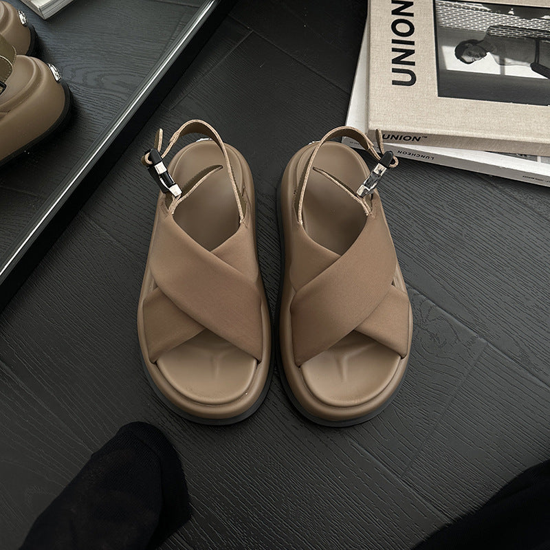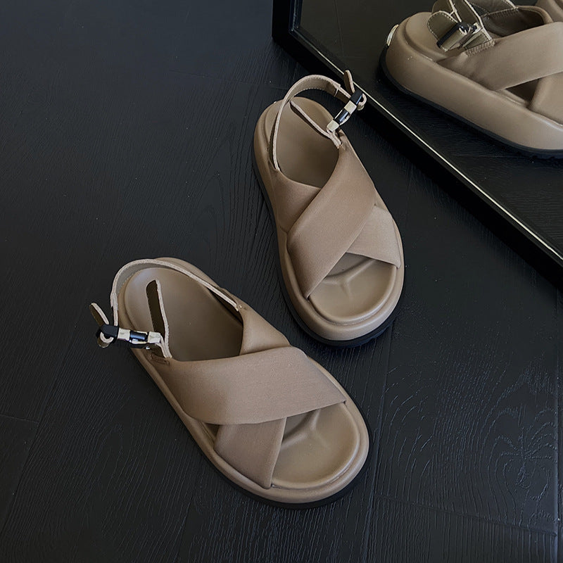Sandales respirantes avec sangle à boucle croisée et plateforme EVA, vêtements d'extérieur mode rétro